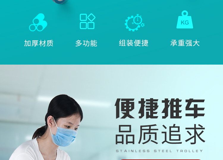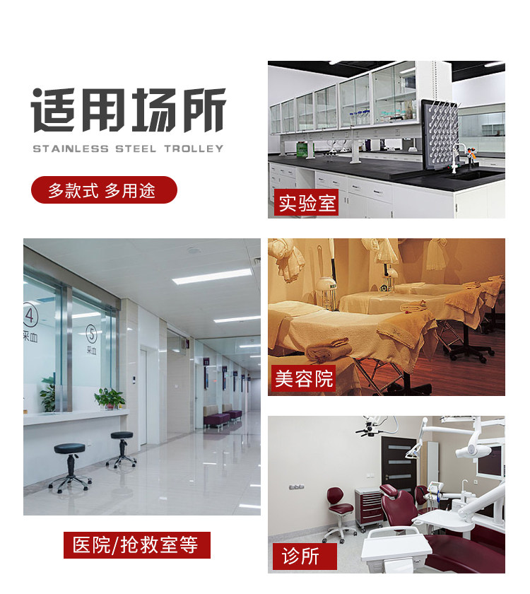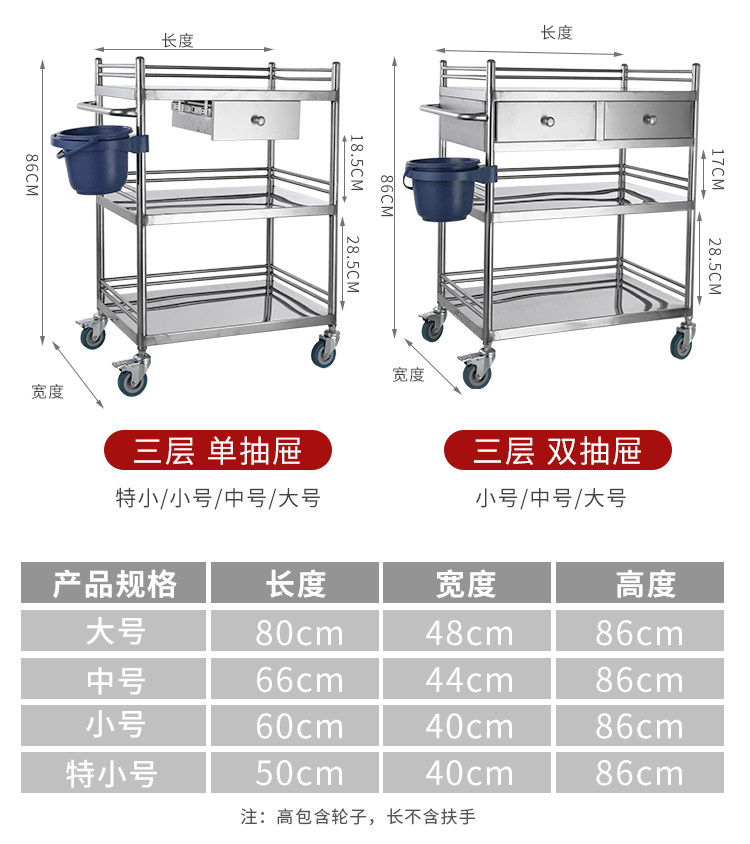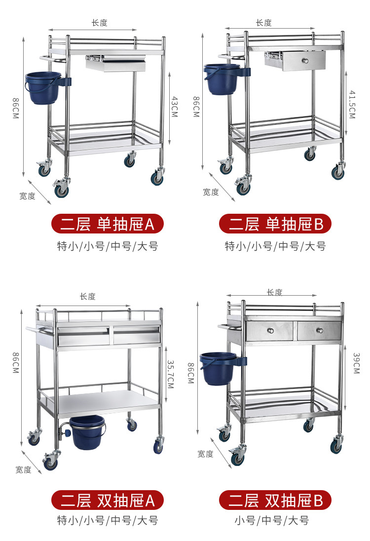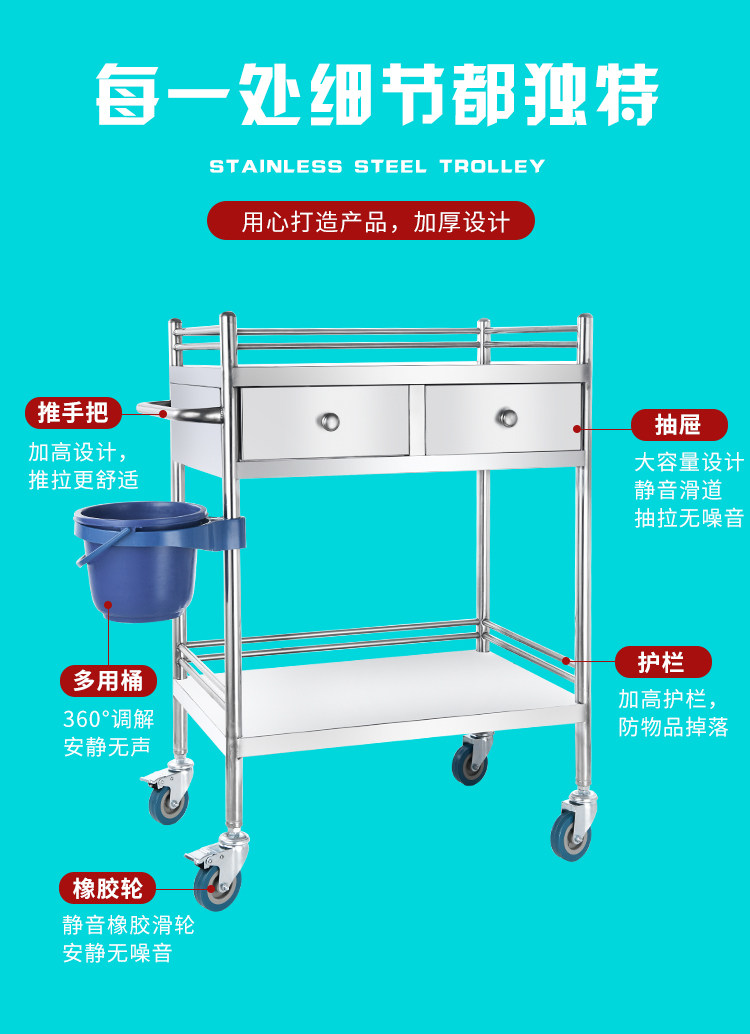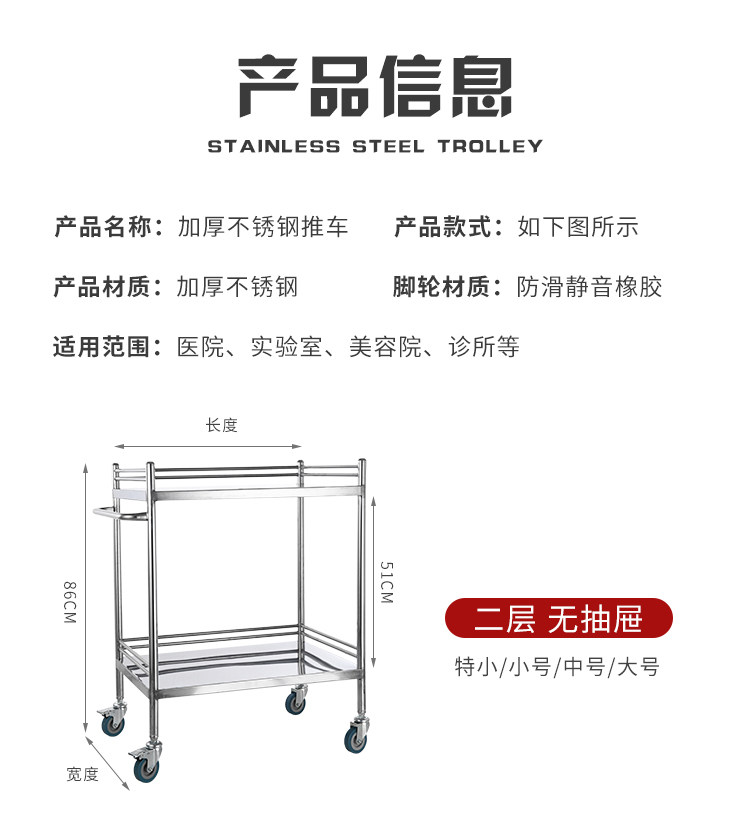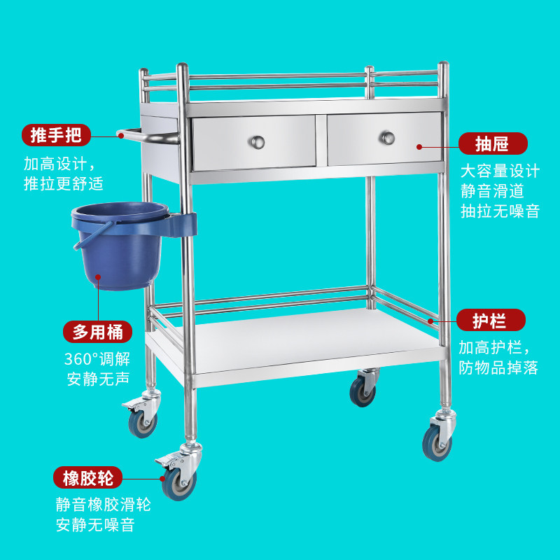 Медицинская оральная тележка из нержавеющей стали, увеличенная толщина