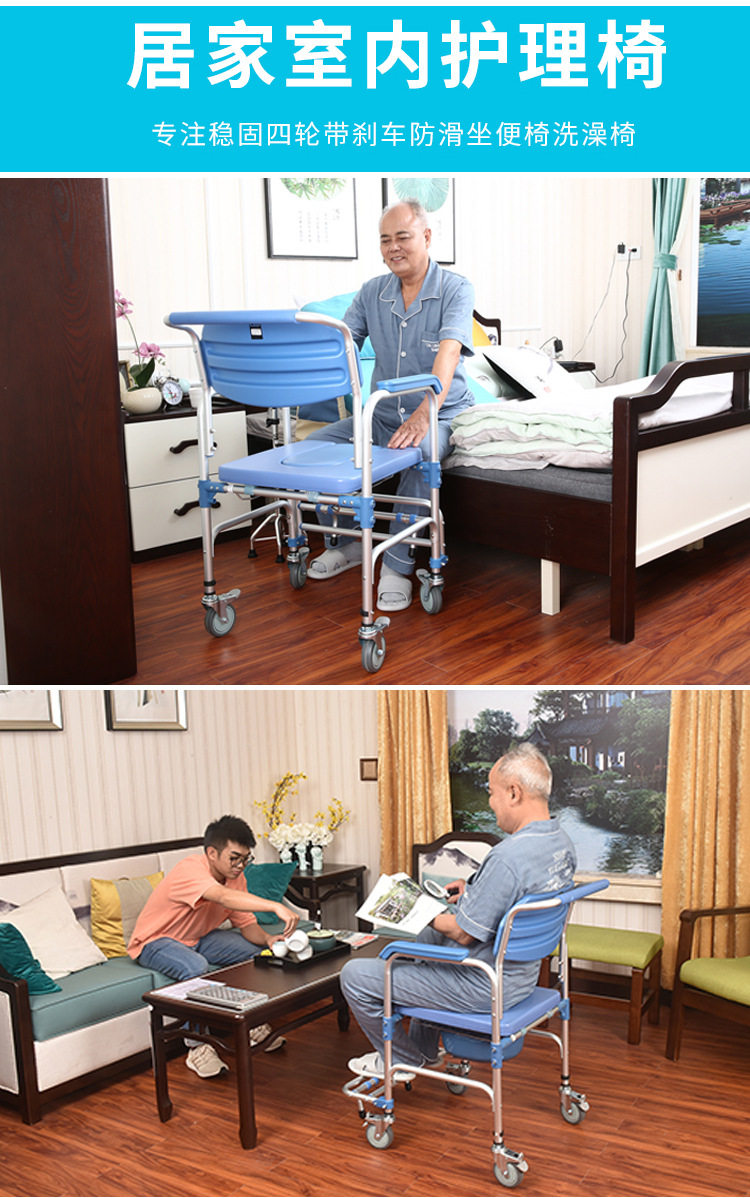 Старик принимает колеса, чтобы принять ванну, кресло для ванны, колесо -беременное туалетное кресло с инвалидом, стул для охлаждения стула для ванны