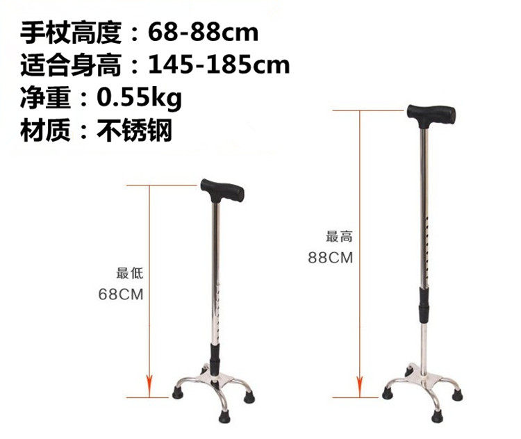 Распространение костылей четырехселенных тростников пожилых людей с трубкой из нержавеющей стали с четырьмя корнями, поворачиваясь с пожилыми утолщенными слухами против стекла войны