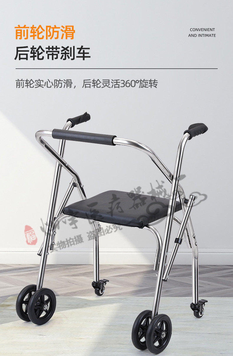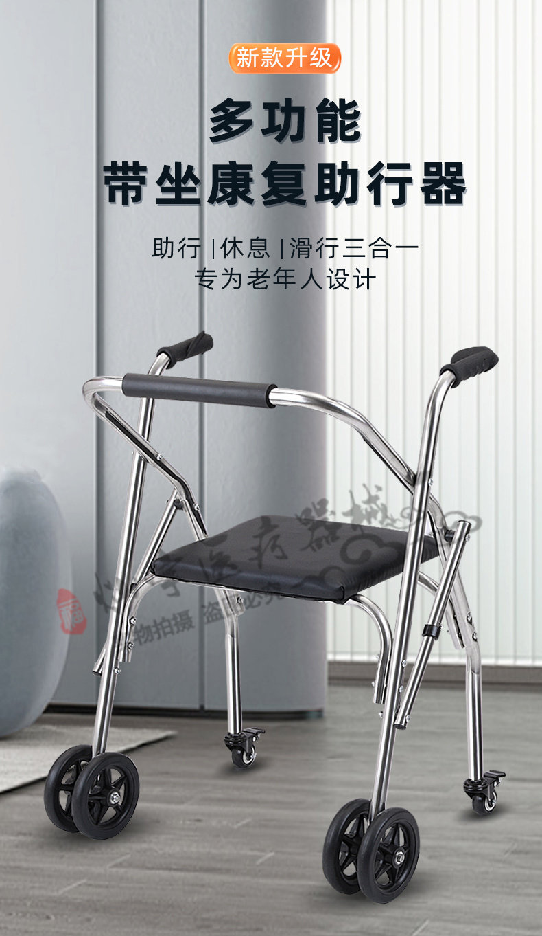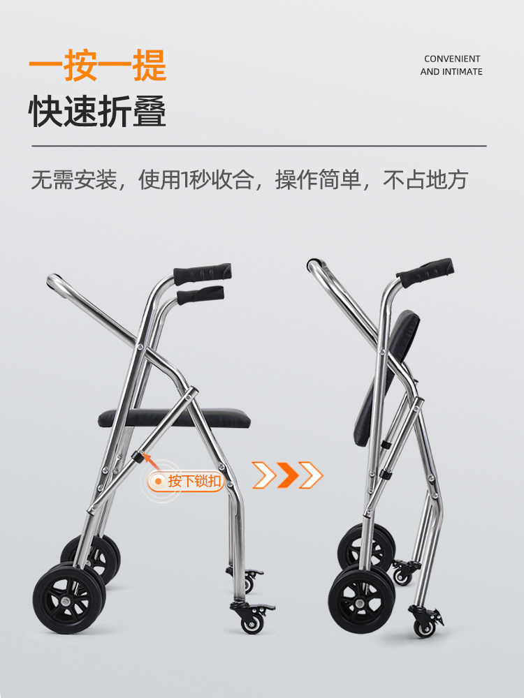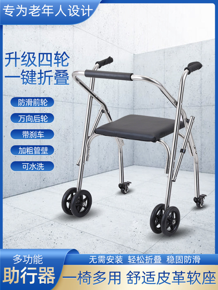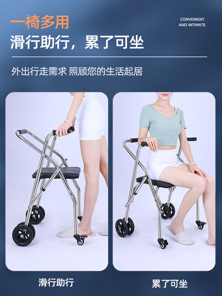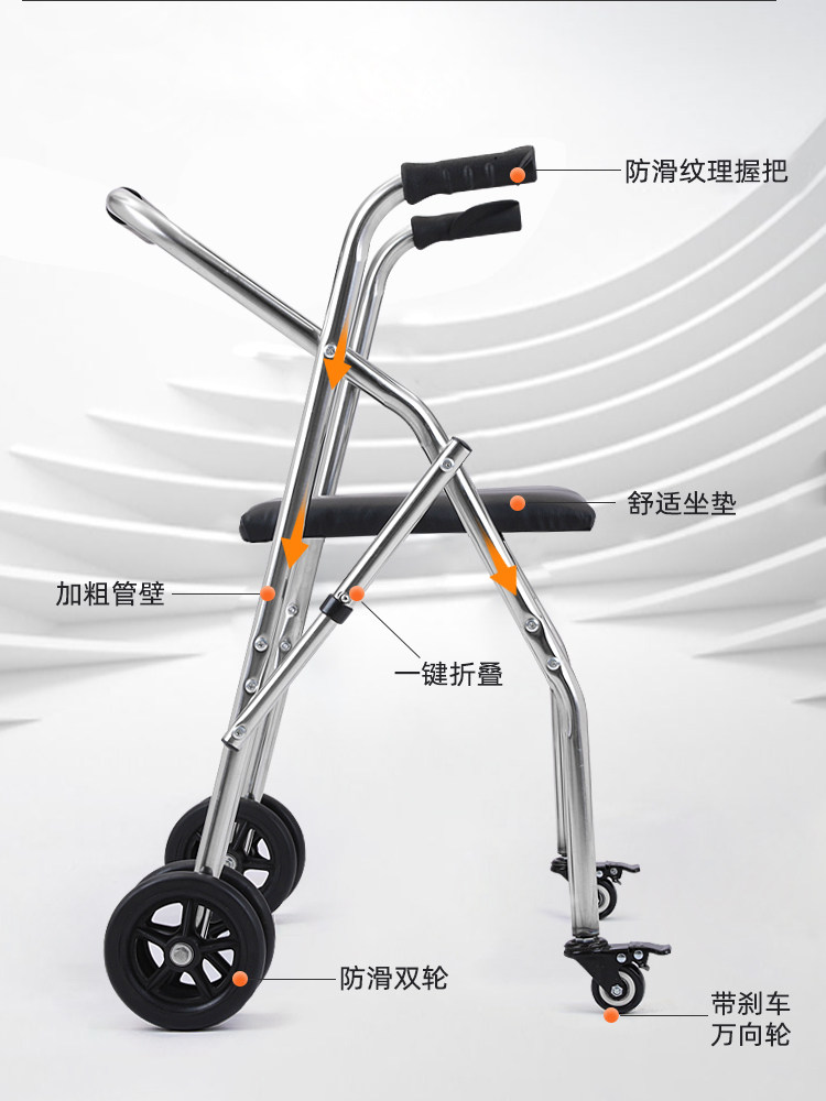 Помощь нержавеющей стали Пожилые люди изучают автомобили с ограниченными возможностями, вспомогательные ходячие работники с колесами с колесами
