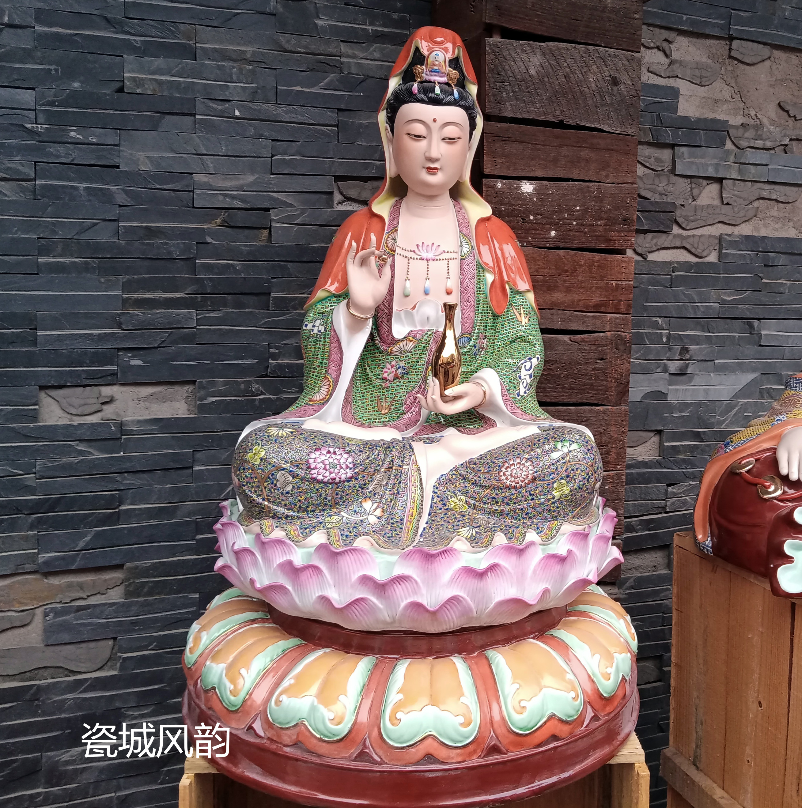 Керамика, сидящая в Лотос Нанхай Гуаньин Бодхисаттву Будда Статуя гостиной, посвящена статуе Гуаньина Бодхисаттвы Гуаньян 32 дюйма