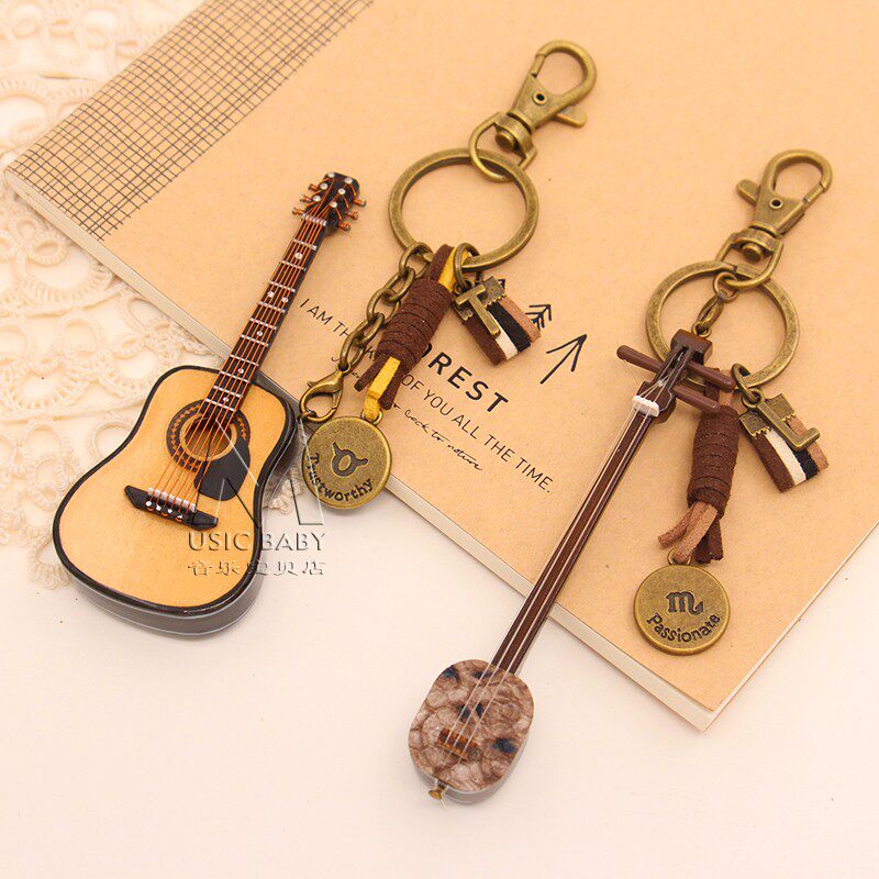 Трехструнная модель, украшения в китайском стиле, брелок для ключей в виде гитары, трехструнный брелок для ключей, автомобильный маятник Чжоу Цзюлян Мэн Хэтан, фирменный кулон