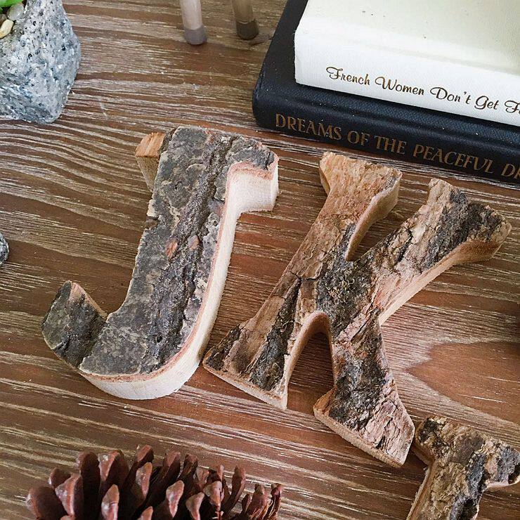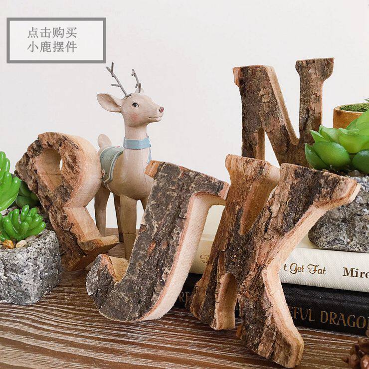 JK MU Space Natural Bark Logwood украшение английской буквы цифровой ретро -деревянный палочка съемки