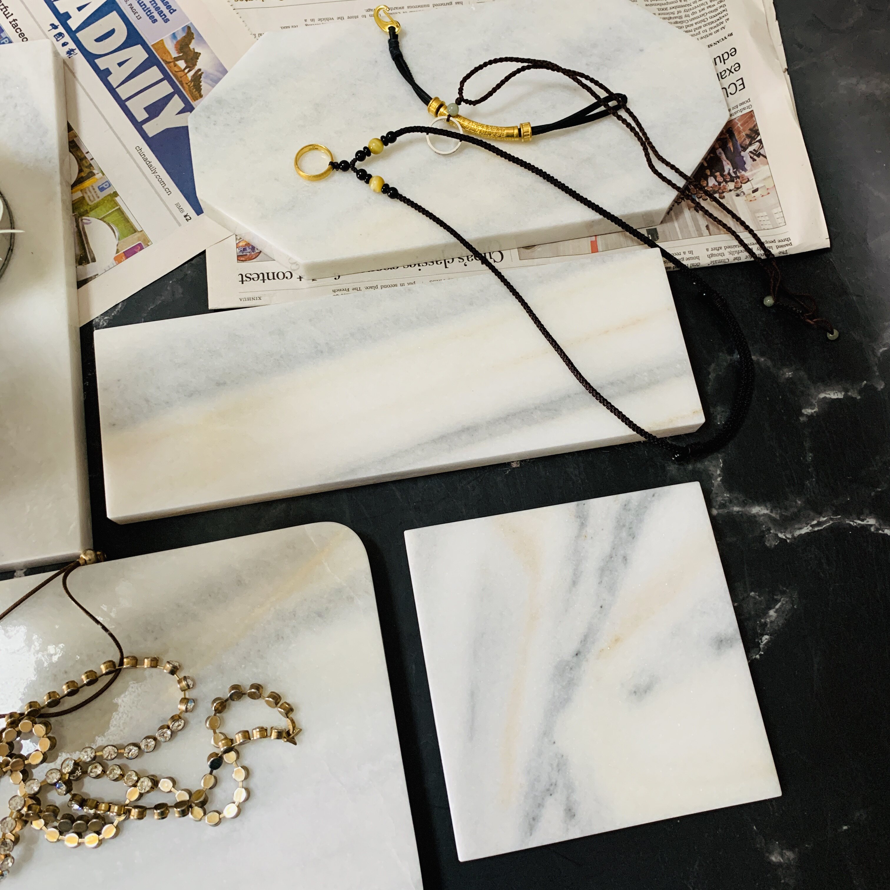 Мраморная длинная квадратная камерная доска