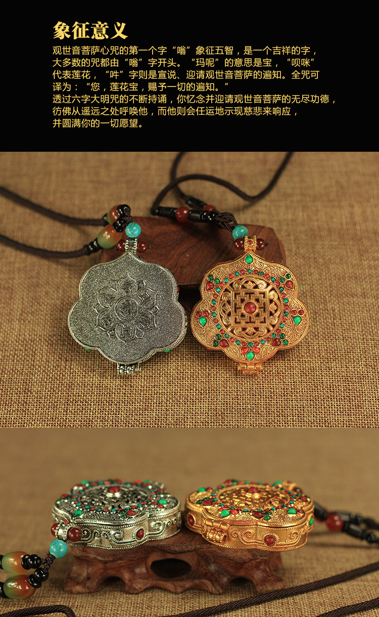 Непал Тибетская шесть персонажей Мантра чистая медная каунка для ящика подвеска