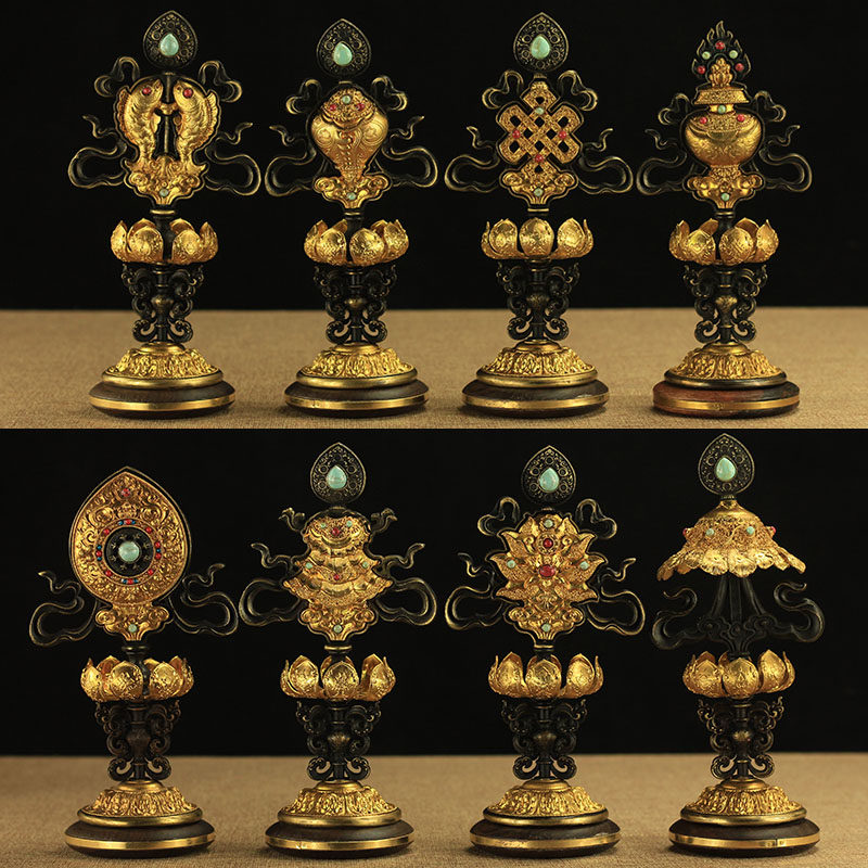 8 -INCH PURE BRONZE восемь благоприятных украшений Тантра Классическая благоприятная восемь сокровищ восемь благоприятных общих коллекций