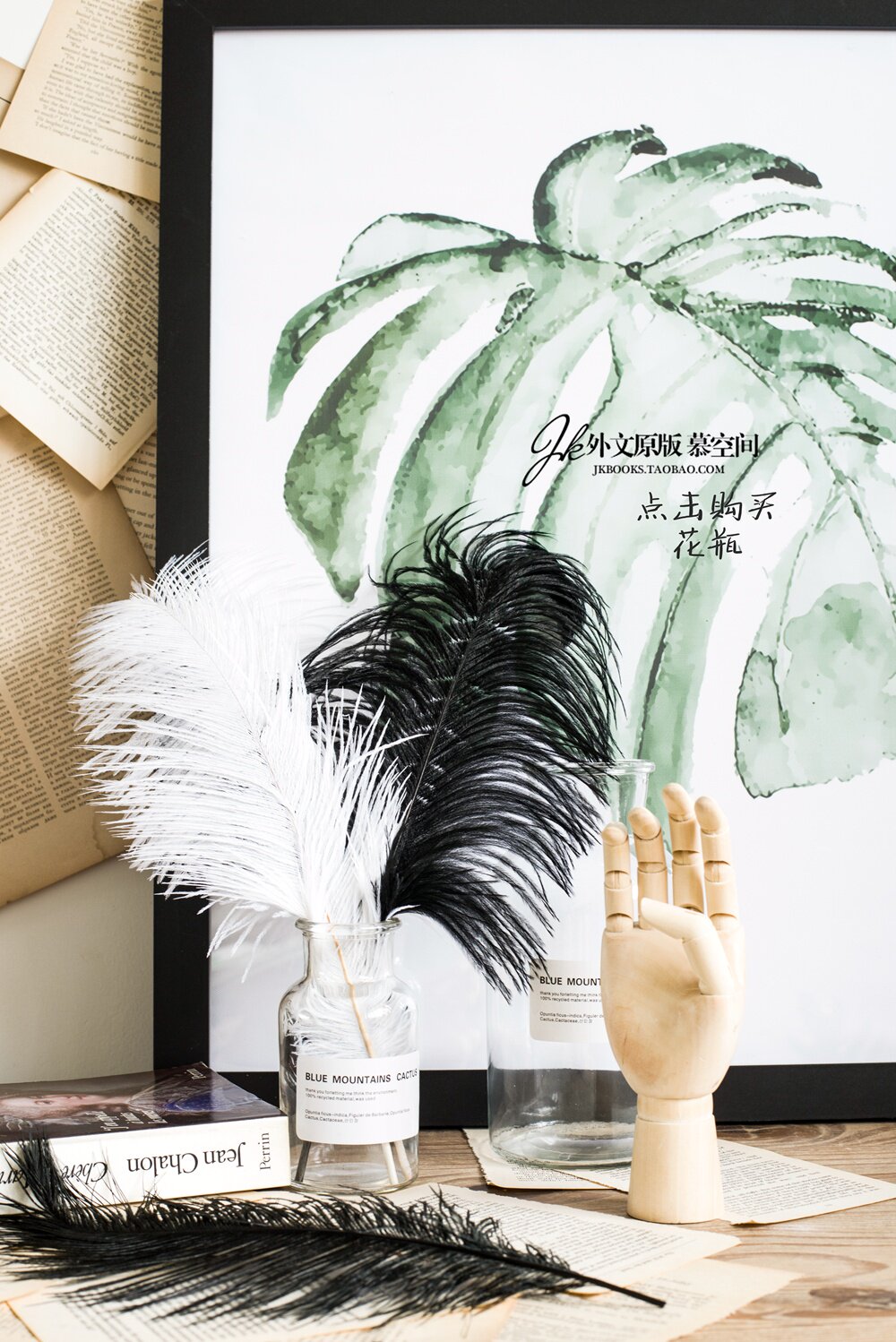 JK Mu Space скандинавский современный ретро страус белый черный большой реквизит для фотосъемки с перьями ваза украшение