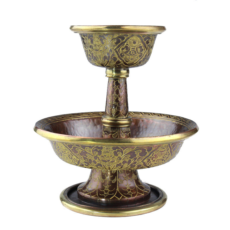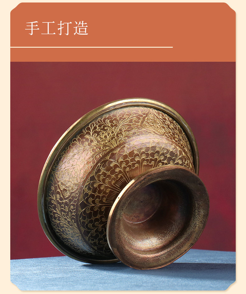 Непальская чашка защиты ручной работы ручной работы для чистой бронзы для чашки, вырезанные золоты
