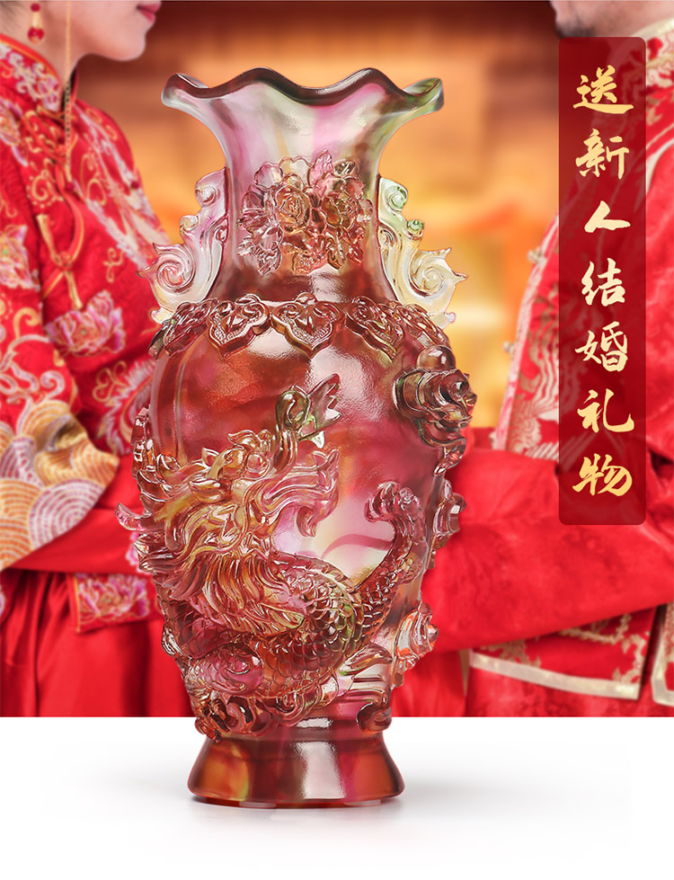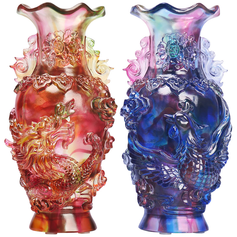Глазурь ваза с драконом и фениксом, элитный свадебный подарок на новоселье, свадебный подарок для молодоженов, украшение для гостиной, прихожей, спальни