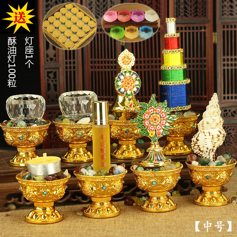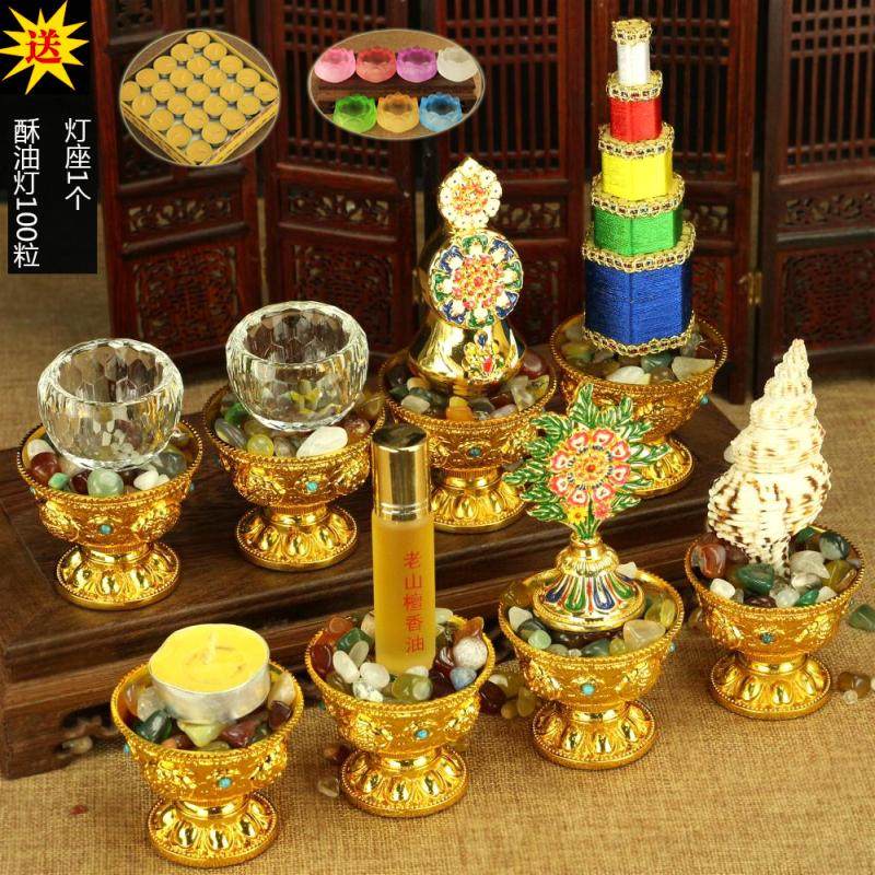 Тантра деятельность Буддийского храма Храма Берег Бэдда Комбинация группы благоприятных восемь предложений предложения для чашек для ароматных башни украшения
