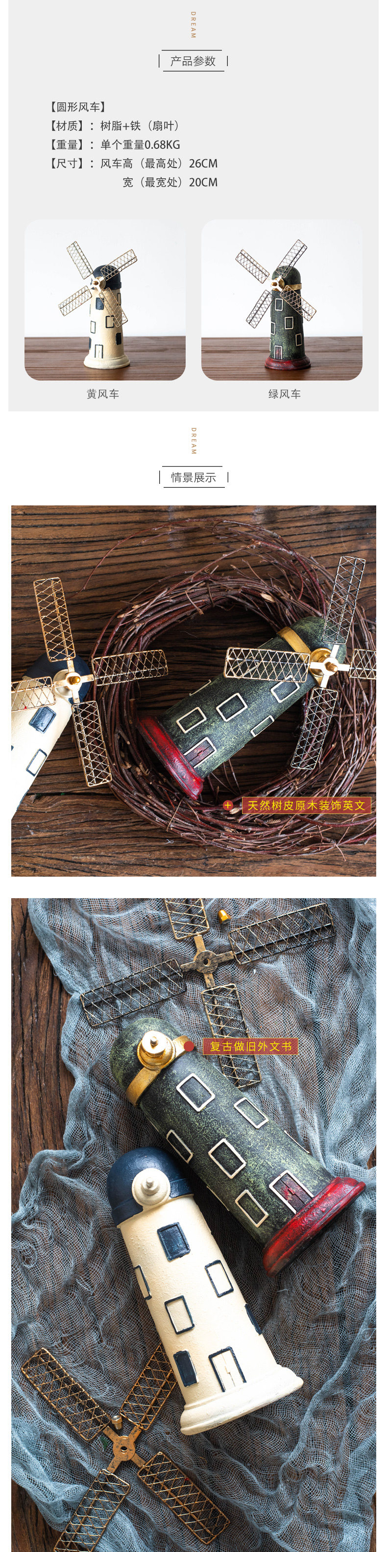 JK MU Space Retro Aged Dome Двухцветный голландский кафе для ветряной мельницы промышленного стиля личное украшение