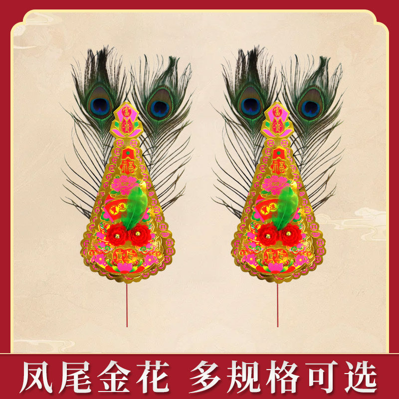Золотой цветок Чаошан Хвост Хвост Феникс Хвост Красный Новый год Божественный Божественный Перья Платформы Горелка Горелка Птица Хвост Хвост божественные столы Мастера Мастера