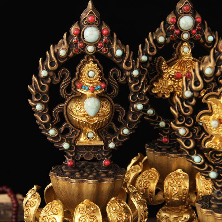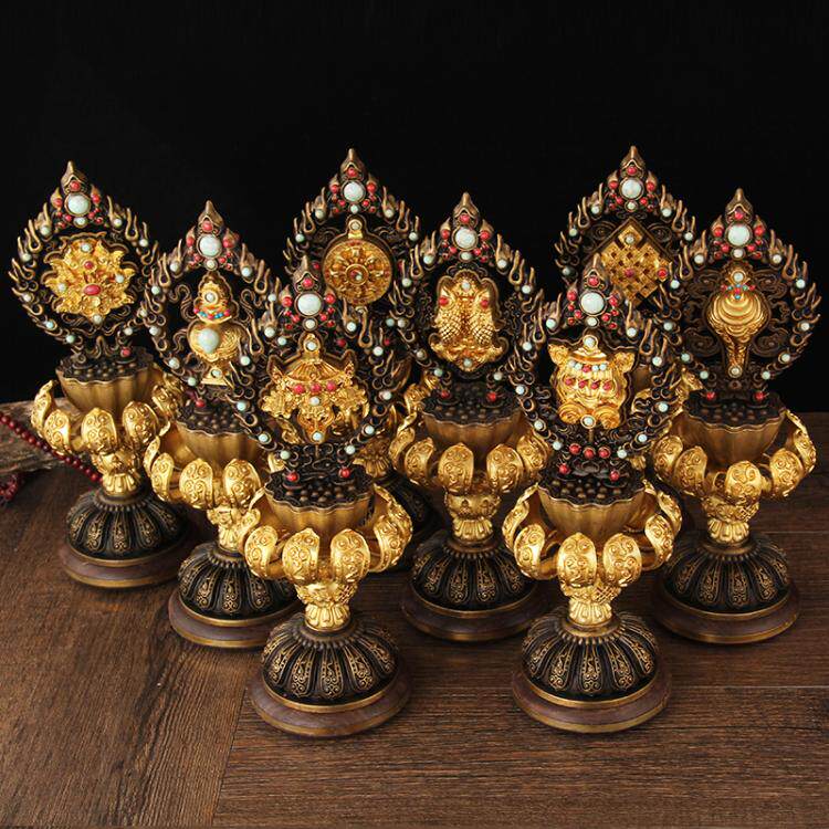 Чистая бронза восемь благоприятных благоприятных восемь сокровищ Новые фавориты Семейные буддийские храмовые храмовые тантрические тантрические ортодоксальные принадлежности