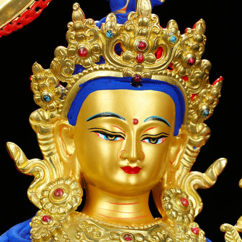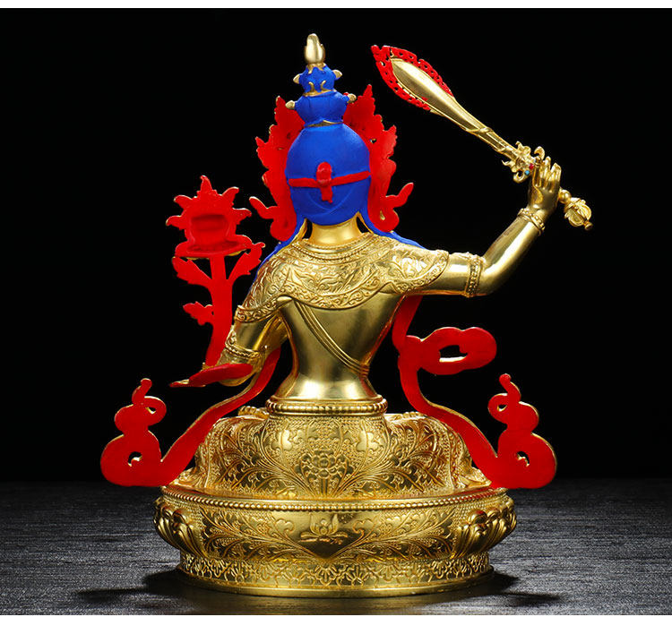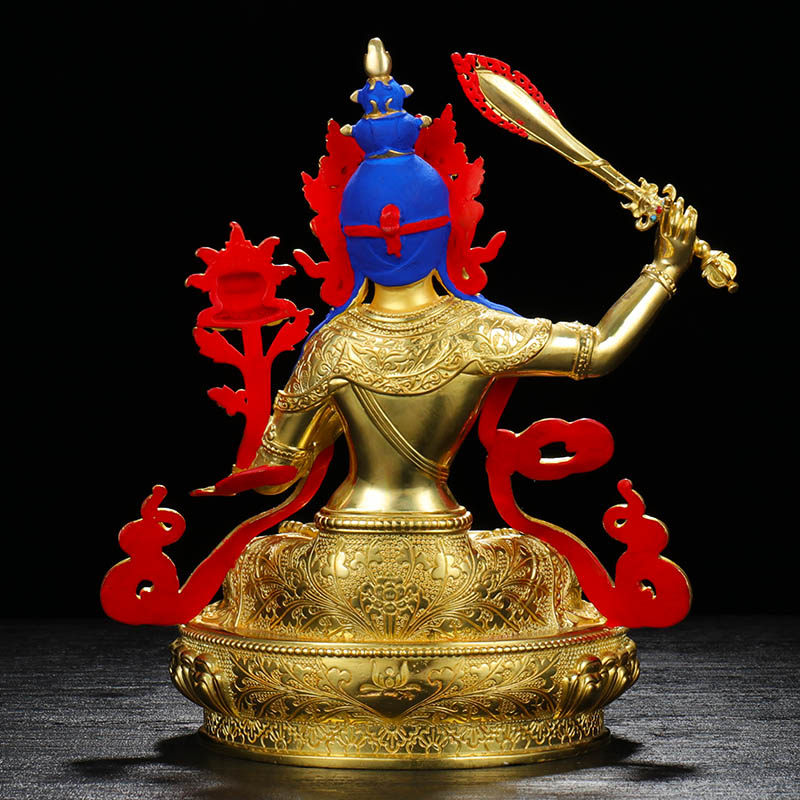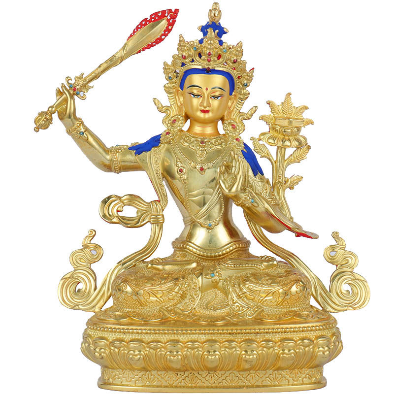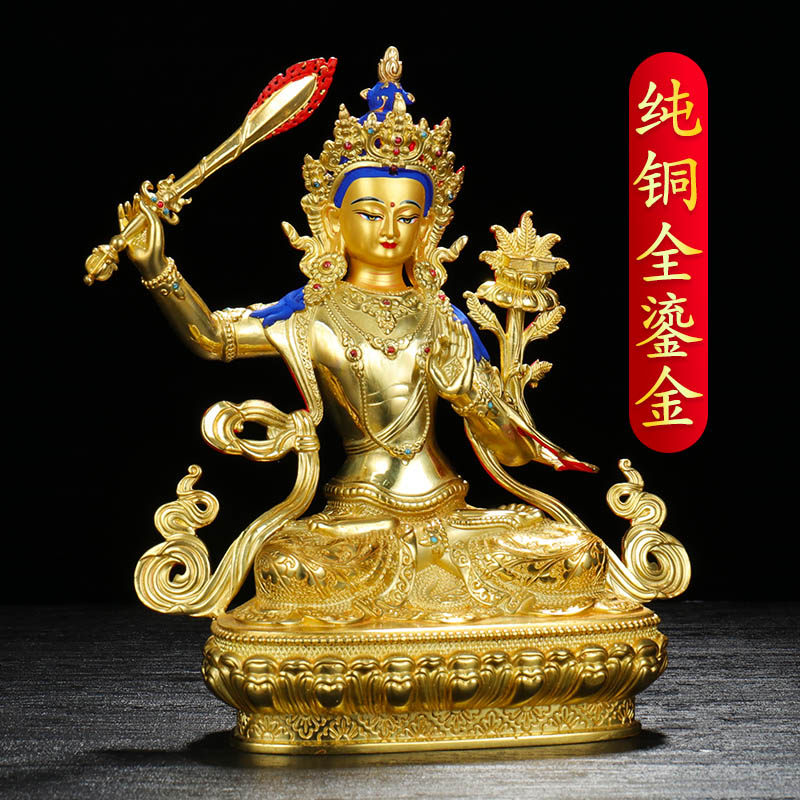 Украшение статуи Будды Веншу Бодхисаттва Чистое бронзовое позолоченное крыльцо дома