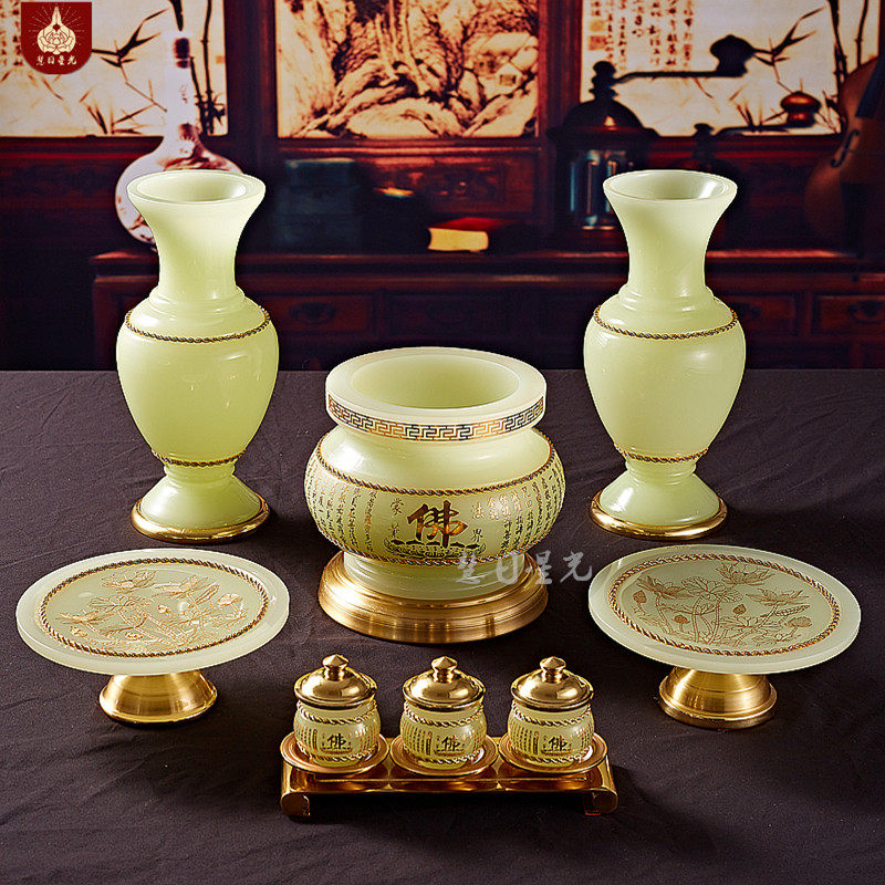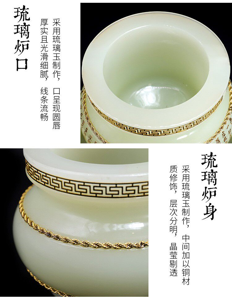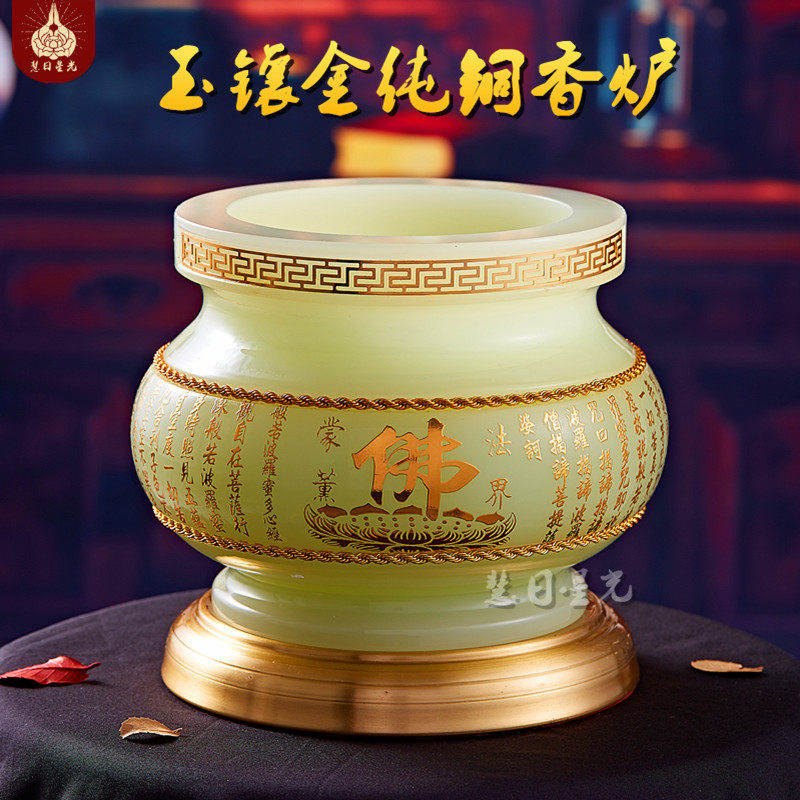 Liuli Jade Parnense Furnace Heart Heart Meridian, богатство, золото инкрустировано нефритовое будда фронт Гуанейн Дома