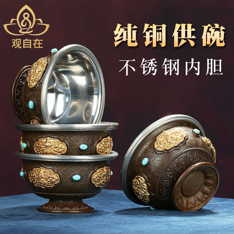 Huibao Pure Медный водопровод для водоснабжения для Будды восемь благоприятных резных домов из нержавеющей стали чаша для водоснабжения чаша для миски доски миски доски миска миска