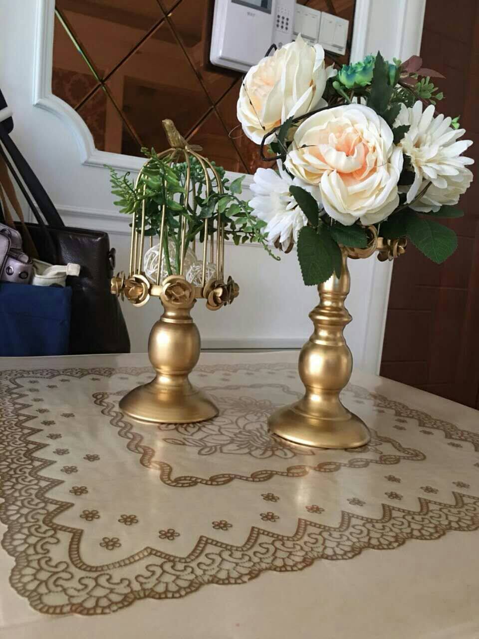 Французская сельская кружевная птичья клетка Железная подсвечника, свадебная свеча бумажная чашка на полке на полке Десерт Макарон