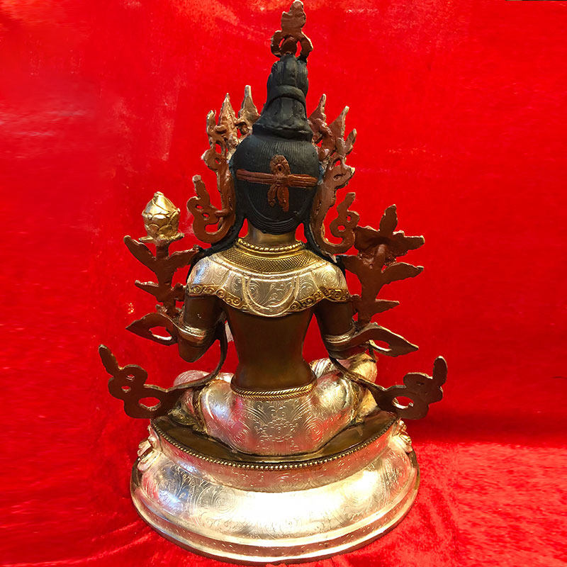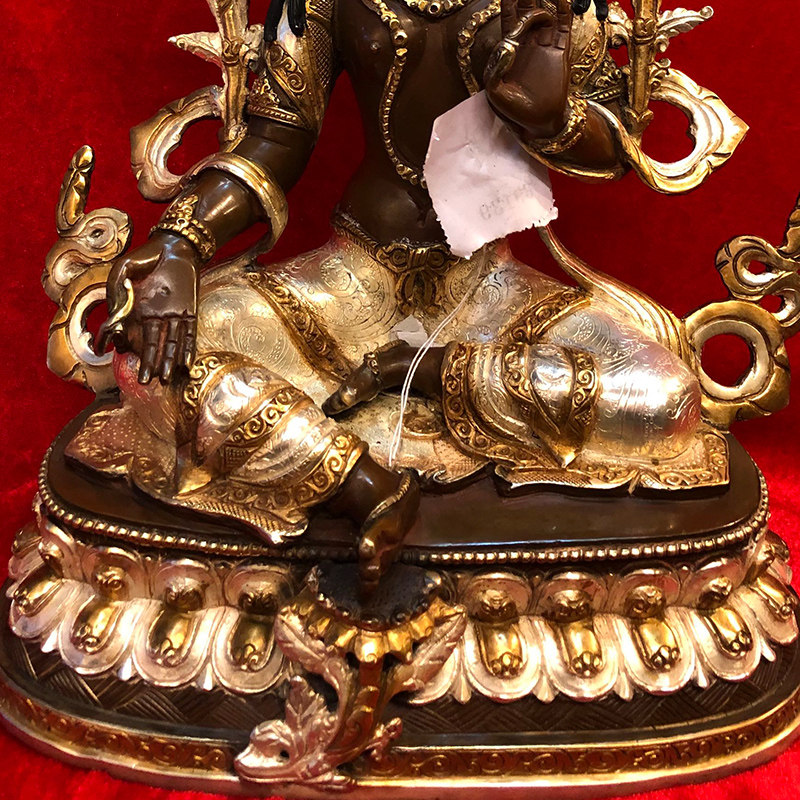 Грин дю Непал ручной работы резной статуи Будды Медное золото золото золото золотой домохозяйчик двухслойный делика вырезан 1 фут 1 фута
