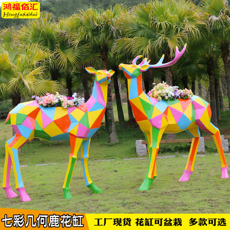 Красочная геометрическая сика -оленя цветок банка из стекловолокна Скульптура животных на открытом воздухе садовый ландшафт оленя украшение украшение орнамент