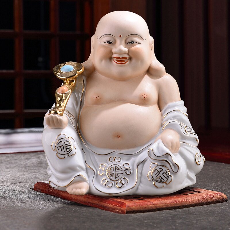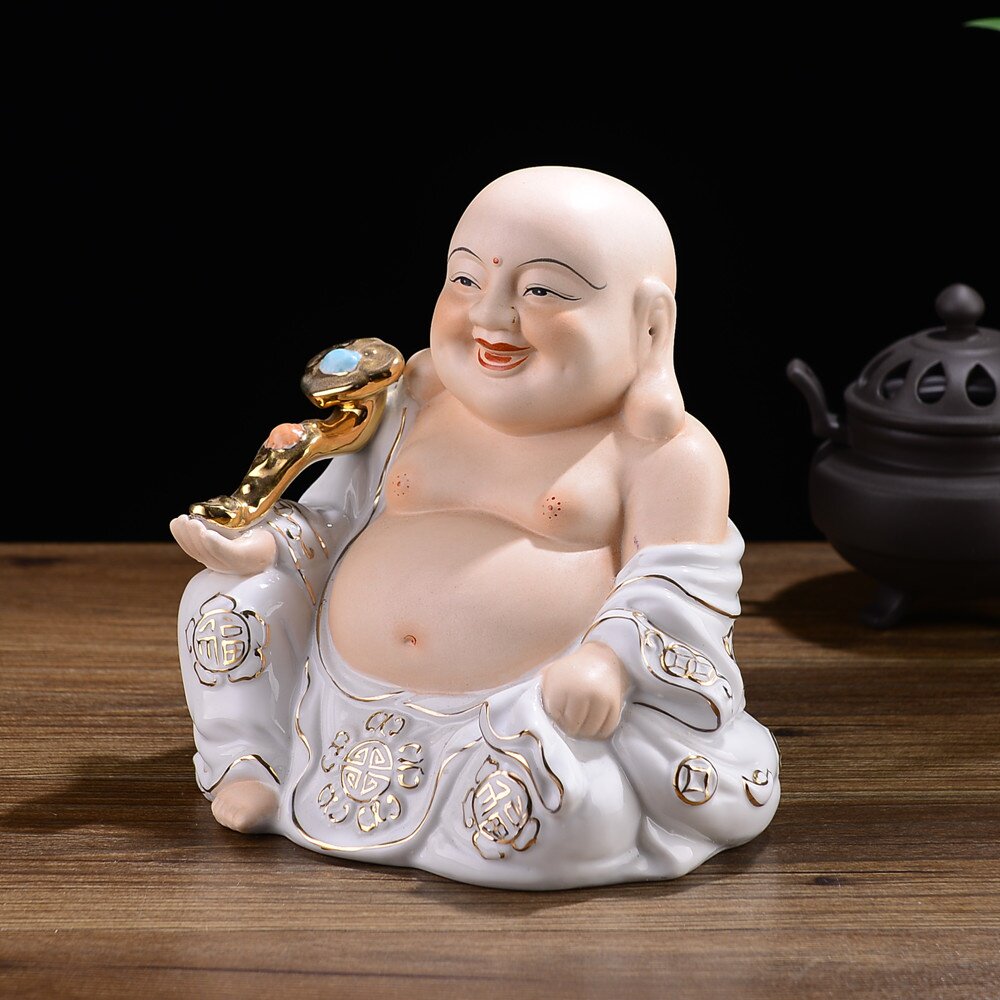 Керамика Maitreya Buddha Статуя гостиной домашней дома набирает богатство и смех Будда поклоняться процессу украшения дзен -крыльца.