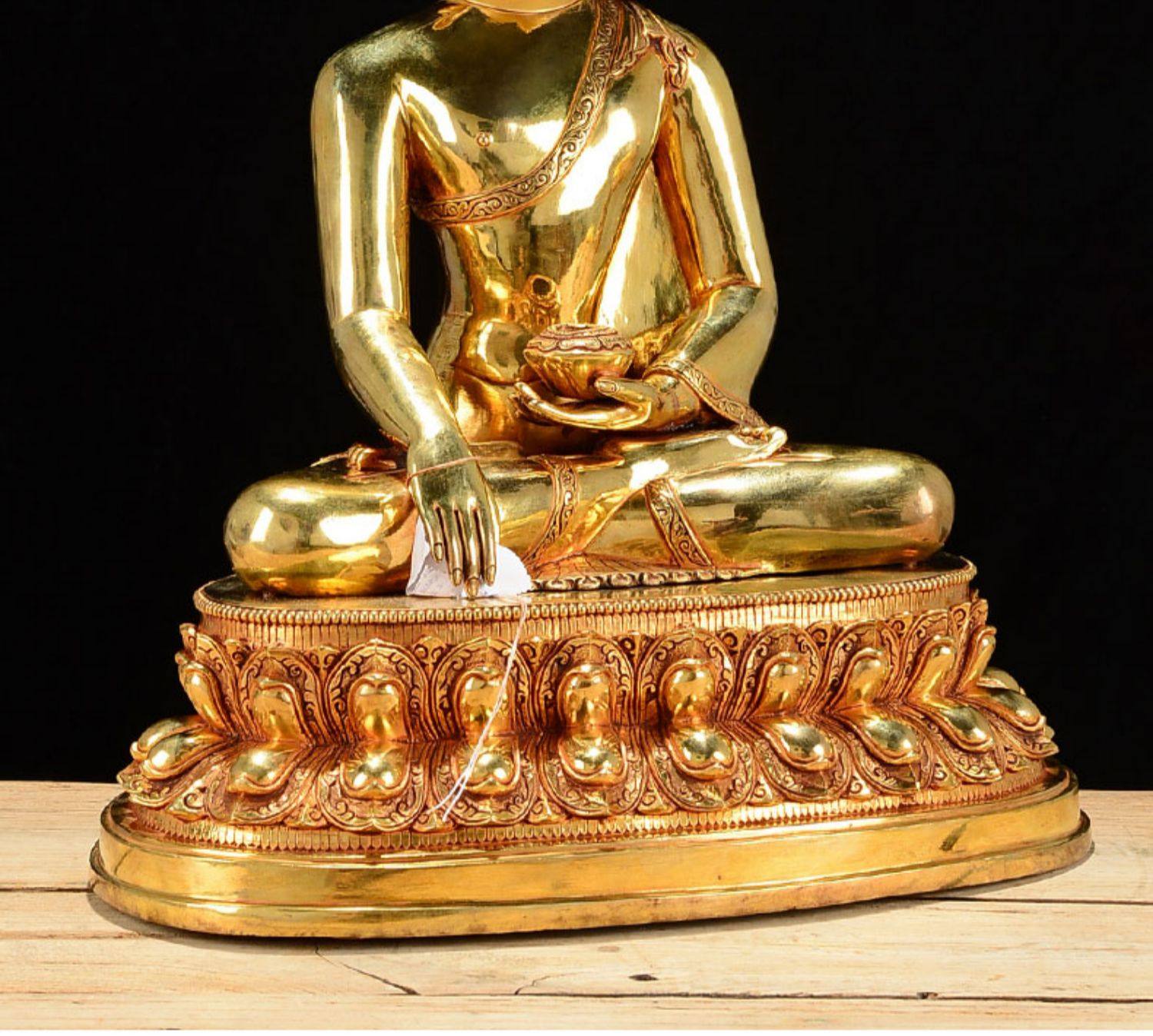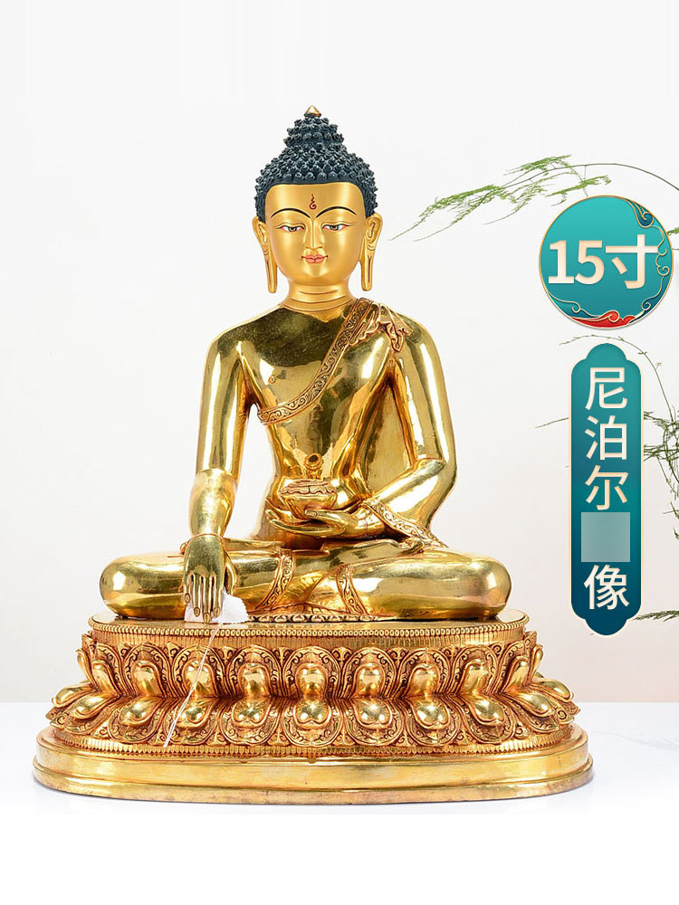 Nibel Sakyamuni Бронзовая позолоченная позолоченная позолота Домашняя настольная рабочая стола Sakyamuni Бронзовая статуя можно хранить украшения