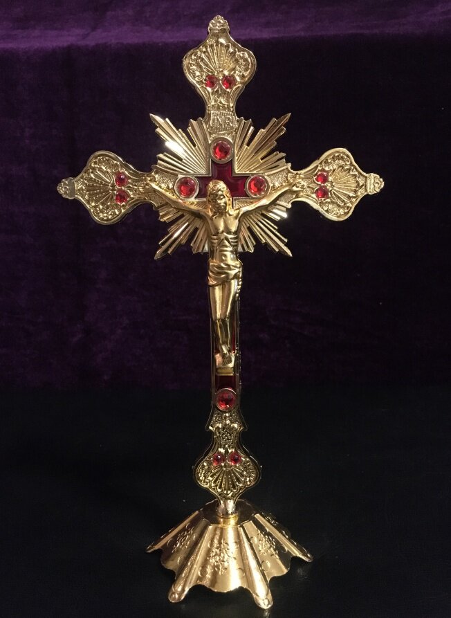 Новый продукт Бесплатная доставка Новое домашнее бронзовое золото, серебряная красная медная медь -вертикальная барокко Иисус Крест Святой портретный орнамент