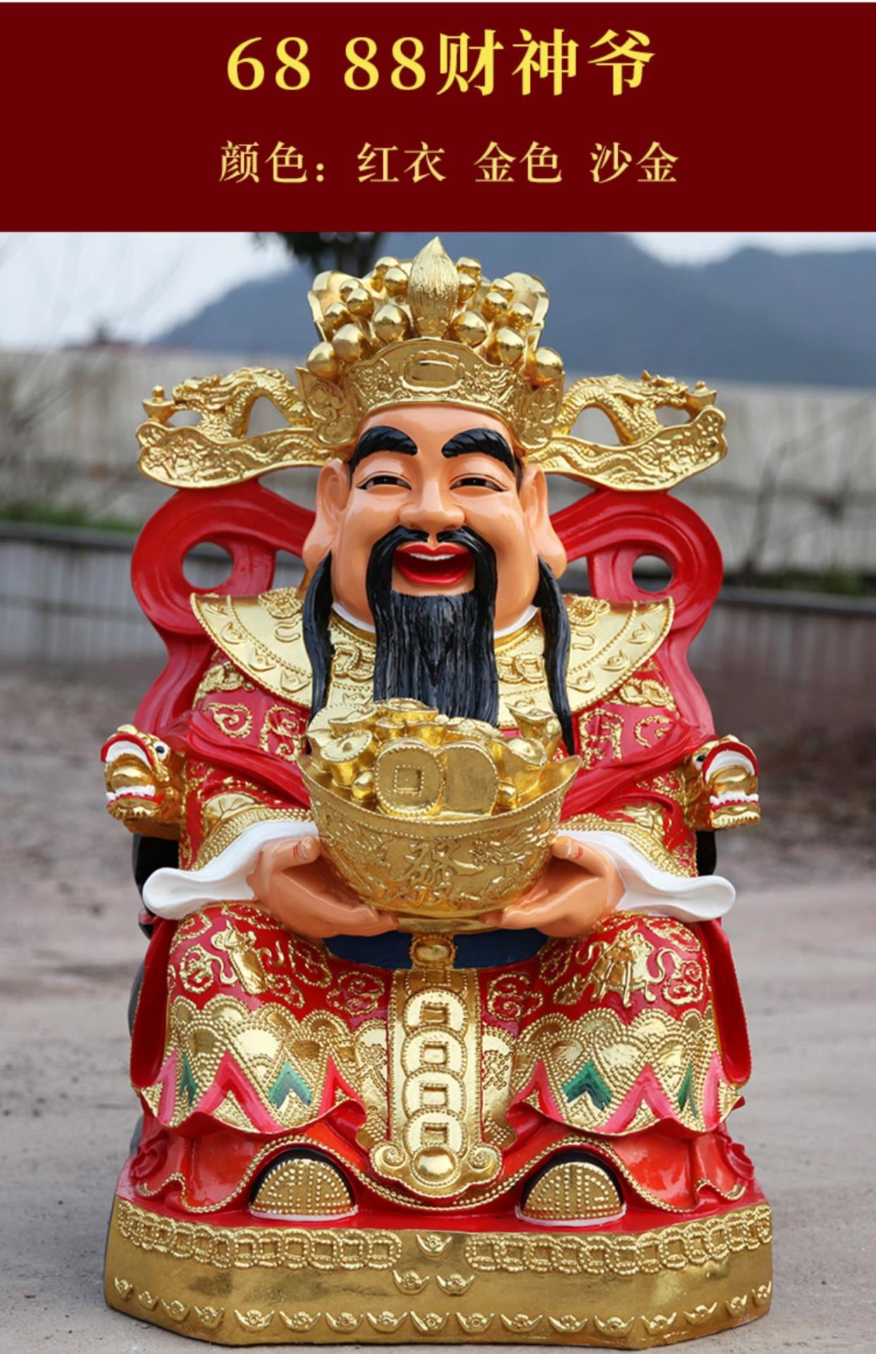 Храм Большой Будда Статуя 1 метра 6 богатство бог красная одежда, статуя богатства F, боги богатства, статуи декоративной смолы Будды
