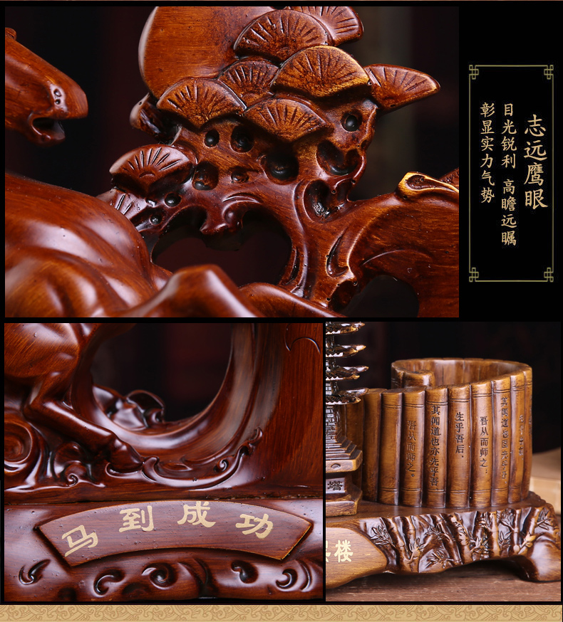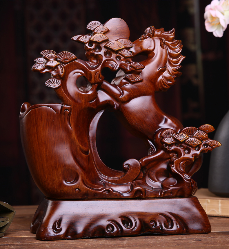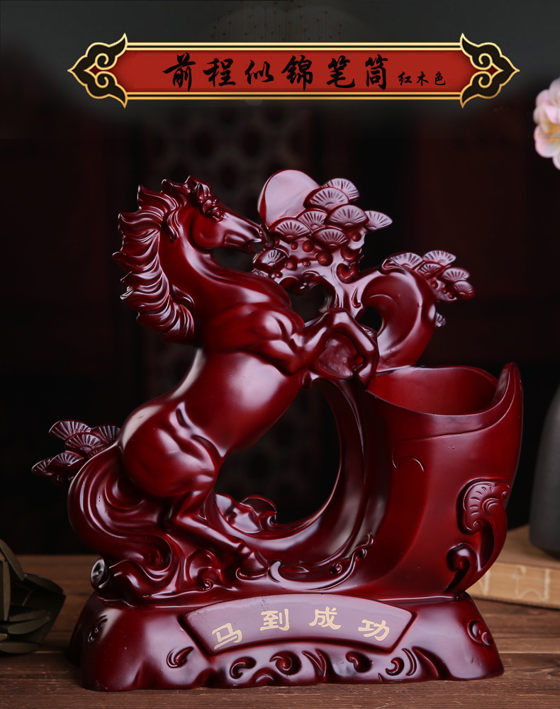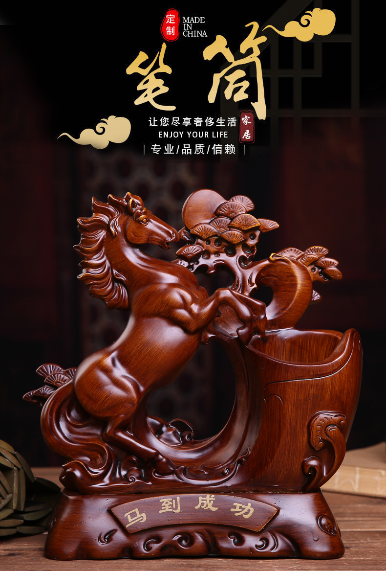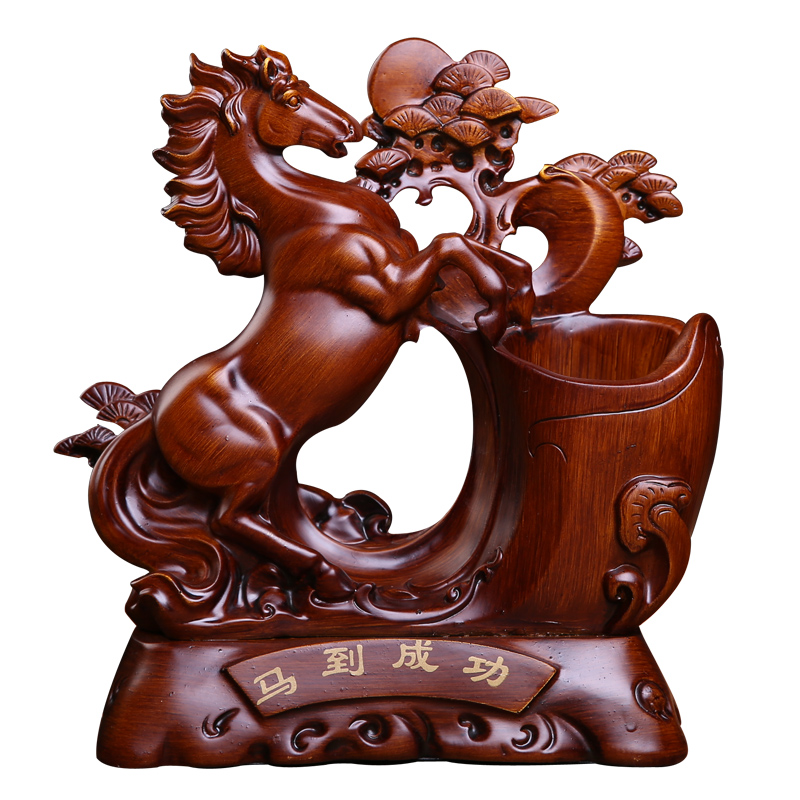 Лошадь к успешным держателям пера творческая мода имитация красного дерева настольные настольные украшения ретро, простой стиль украшения с высоким уровнем