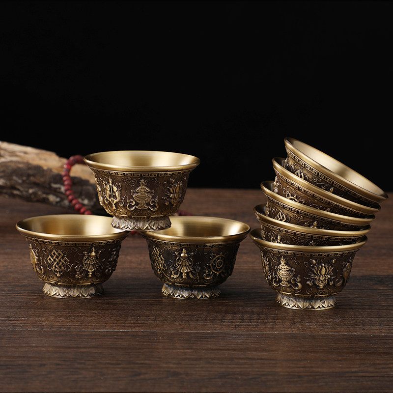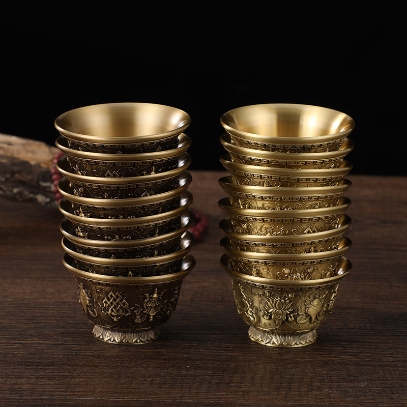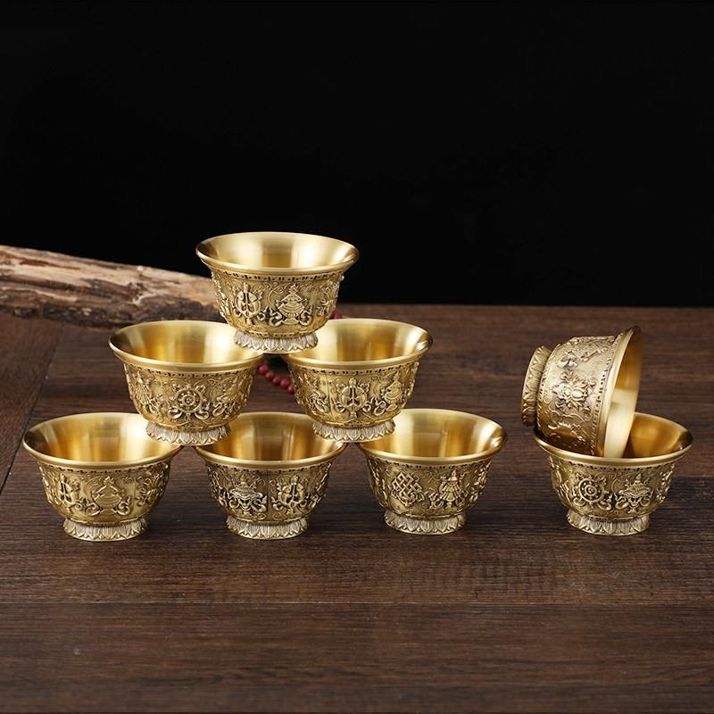 Тибет чистый бронзовый резные чашки для водоснабжения Тантра Семь домов для водоснабжения перед чашкой по размеру буддийской чашки размером