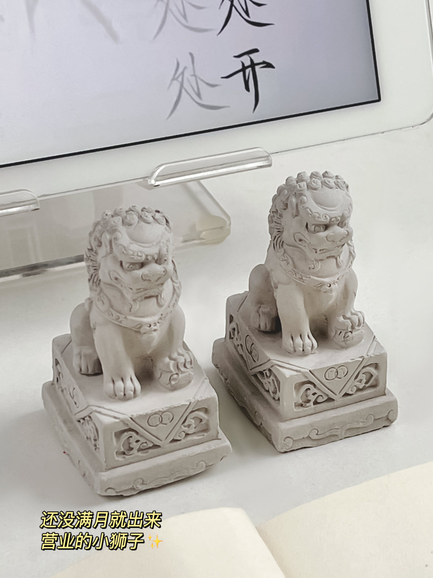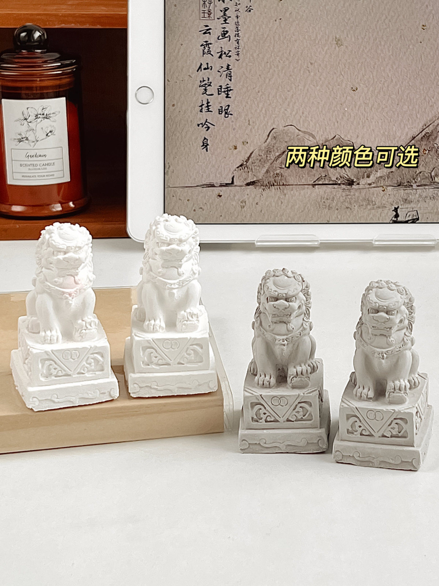 Пара красного цементного рабочего стола Маленькие украшения в городском доме Стоун Лев, слегка сокращая дверь Бога зверя Маленький Лев.