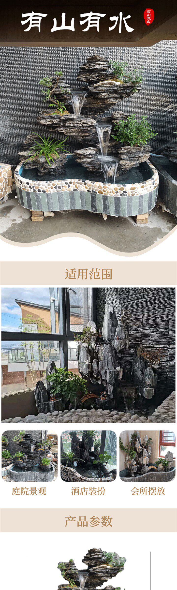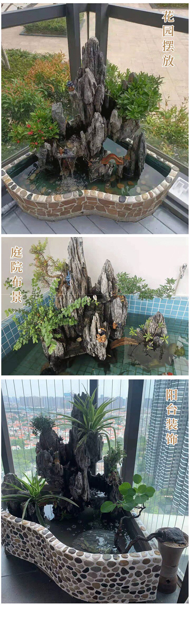 Рок -ландшафтные украшения циркуляции бассейн балкон