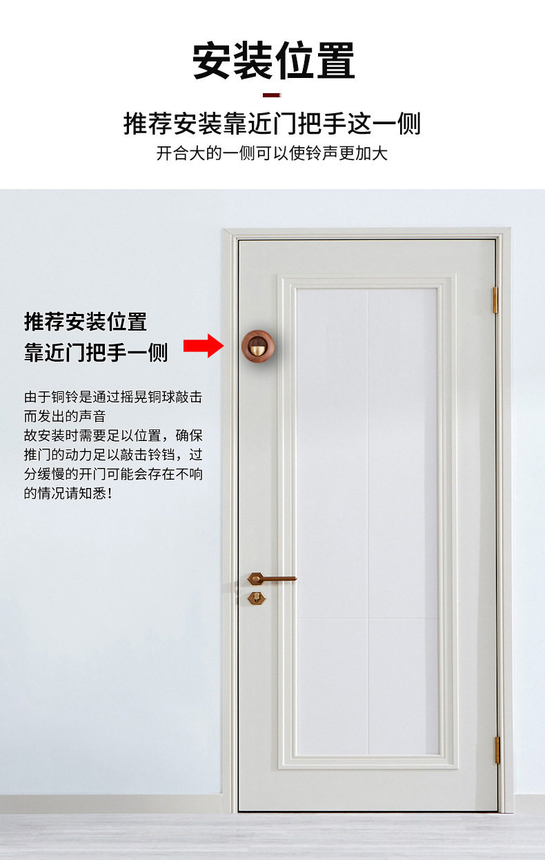 Дофамин, обработка дверного звонка из чистой меди, колокольчик, медный дверной звонок, домашний дверной звонок, магнитный кулон, японский медный звонок