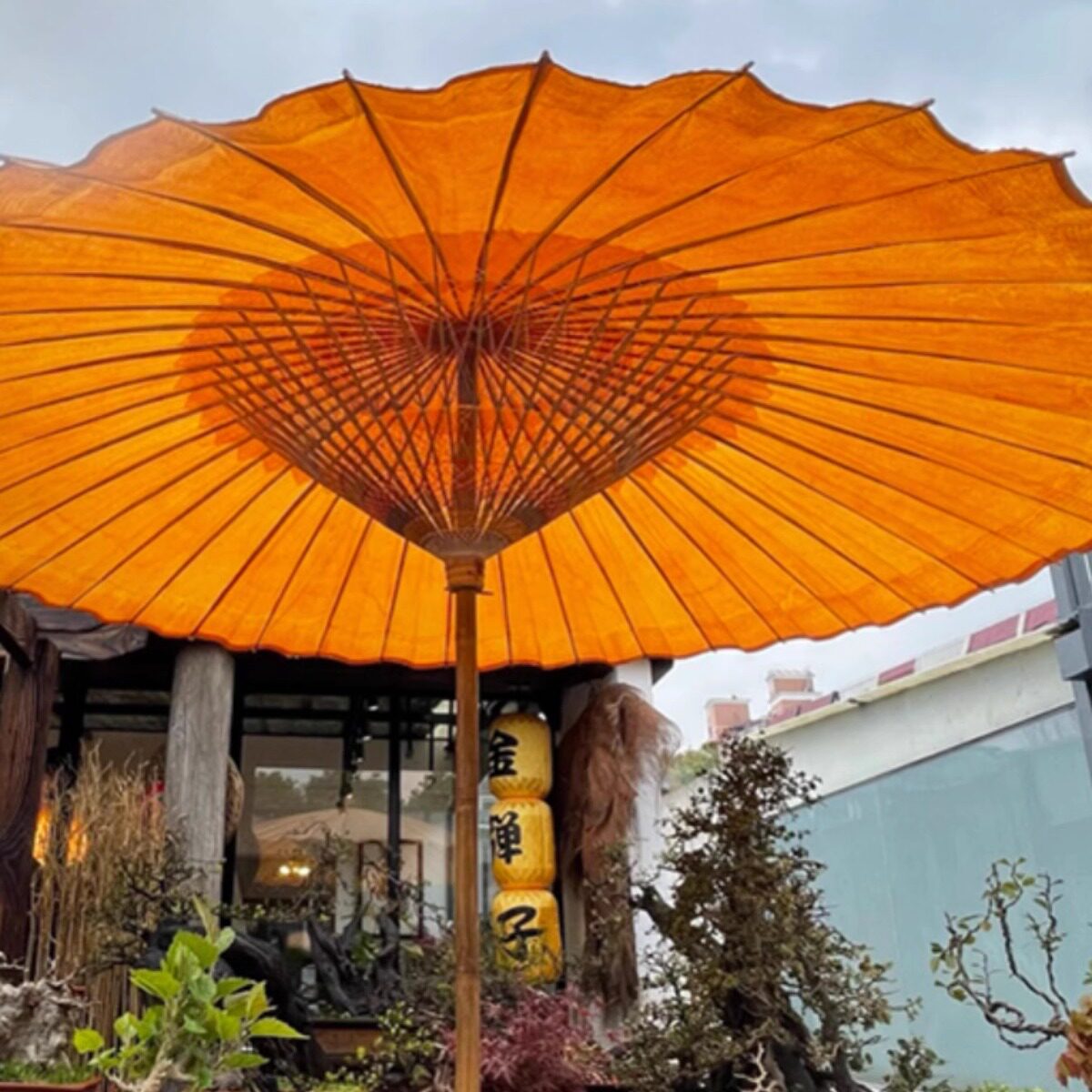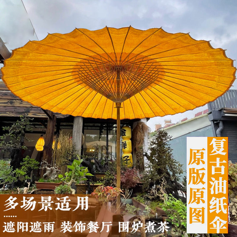 Кипеть чай на открытом воздухе Большая масляная бумага зонтик не -хриппа китайский двор сад солнце зонтик древний ветер.