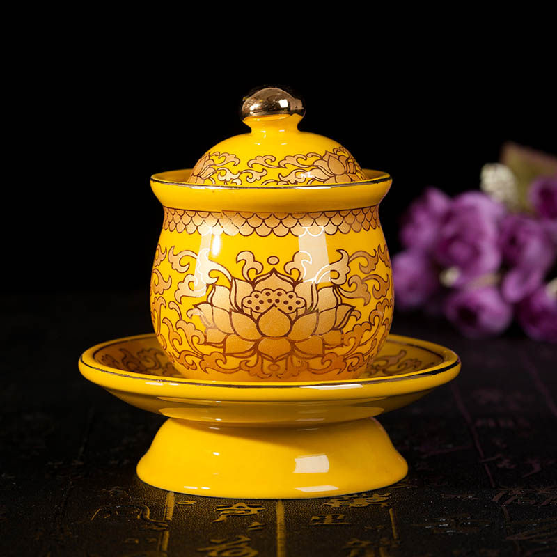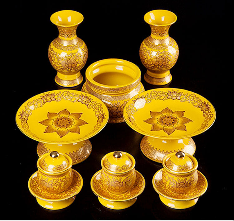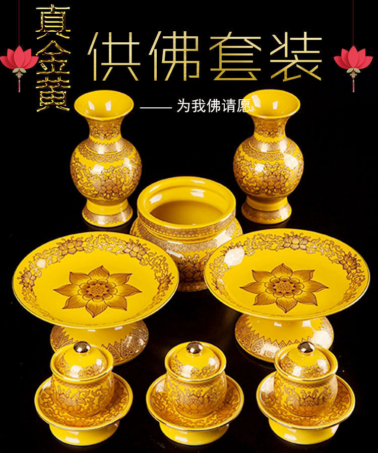 Истинное золото желтое поставки лотоса поставляют керамический домашний орнамент благовония печь бутылка бутылка бутылка для водоснабжения