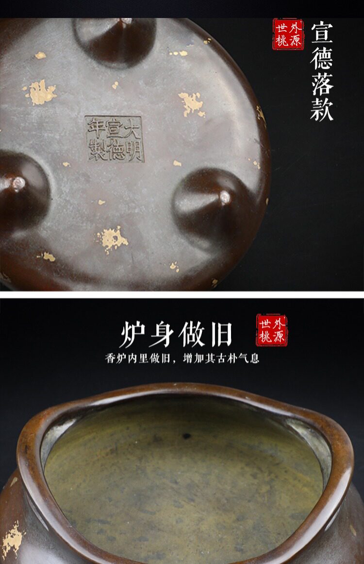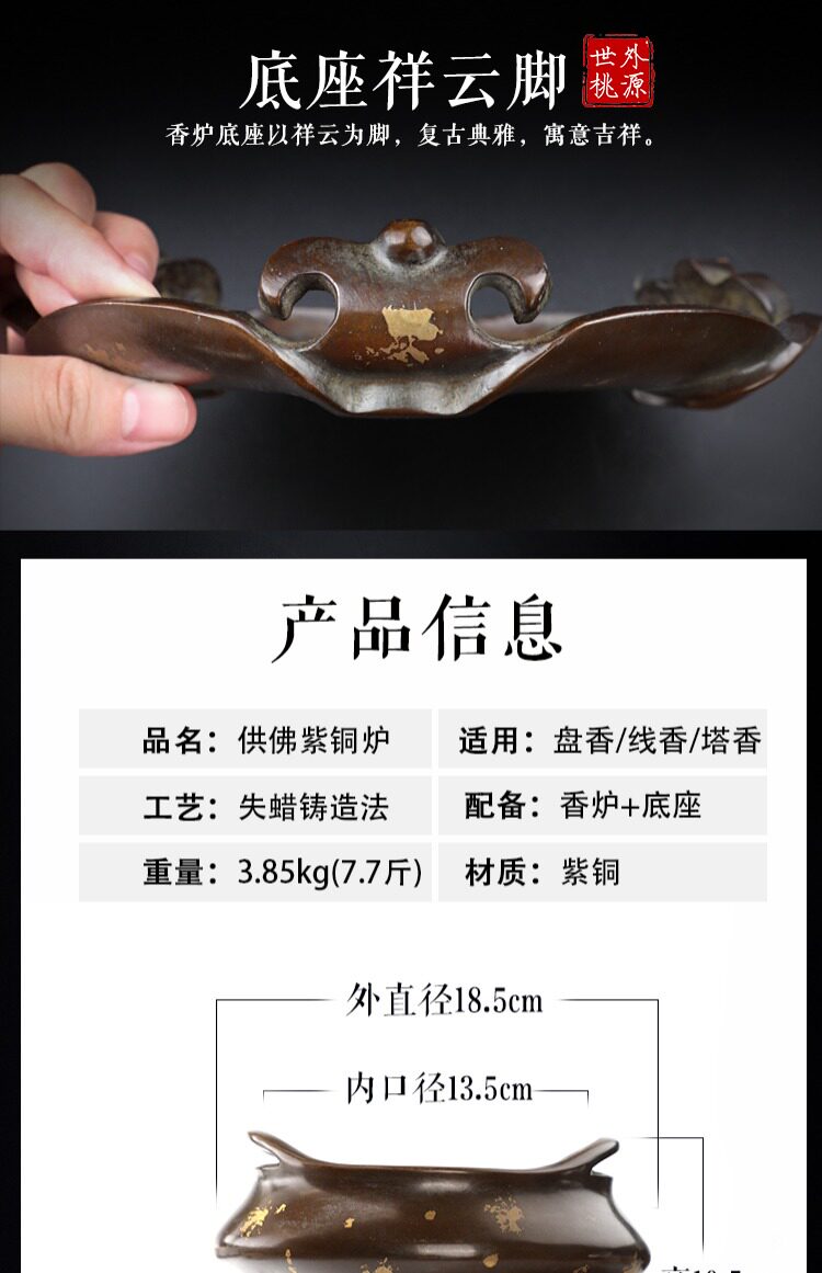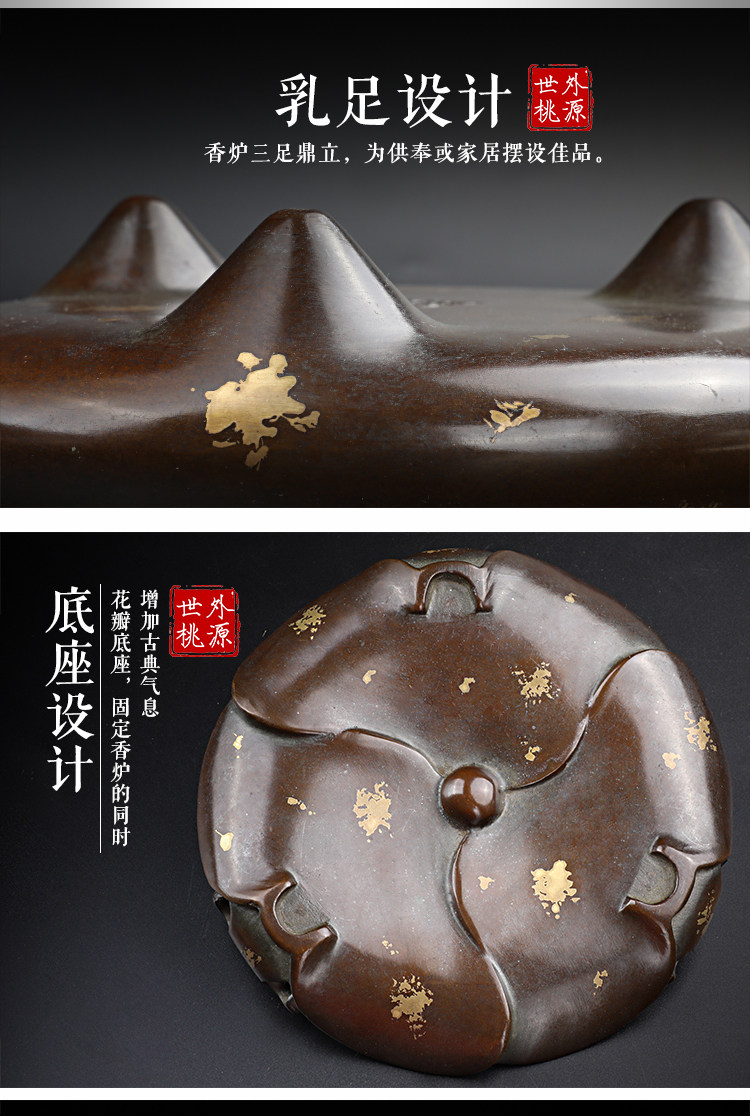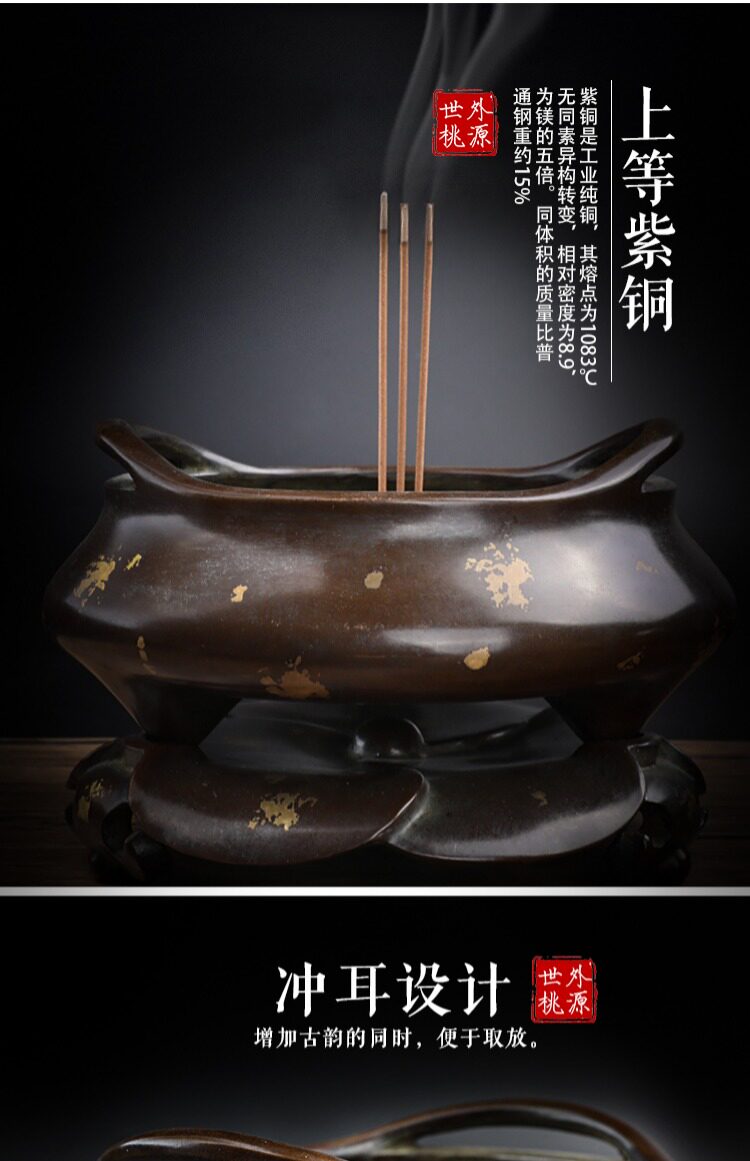 Медная большая антикварная курильница для благовоний из сандалового дерева