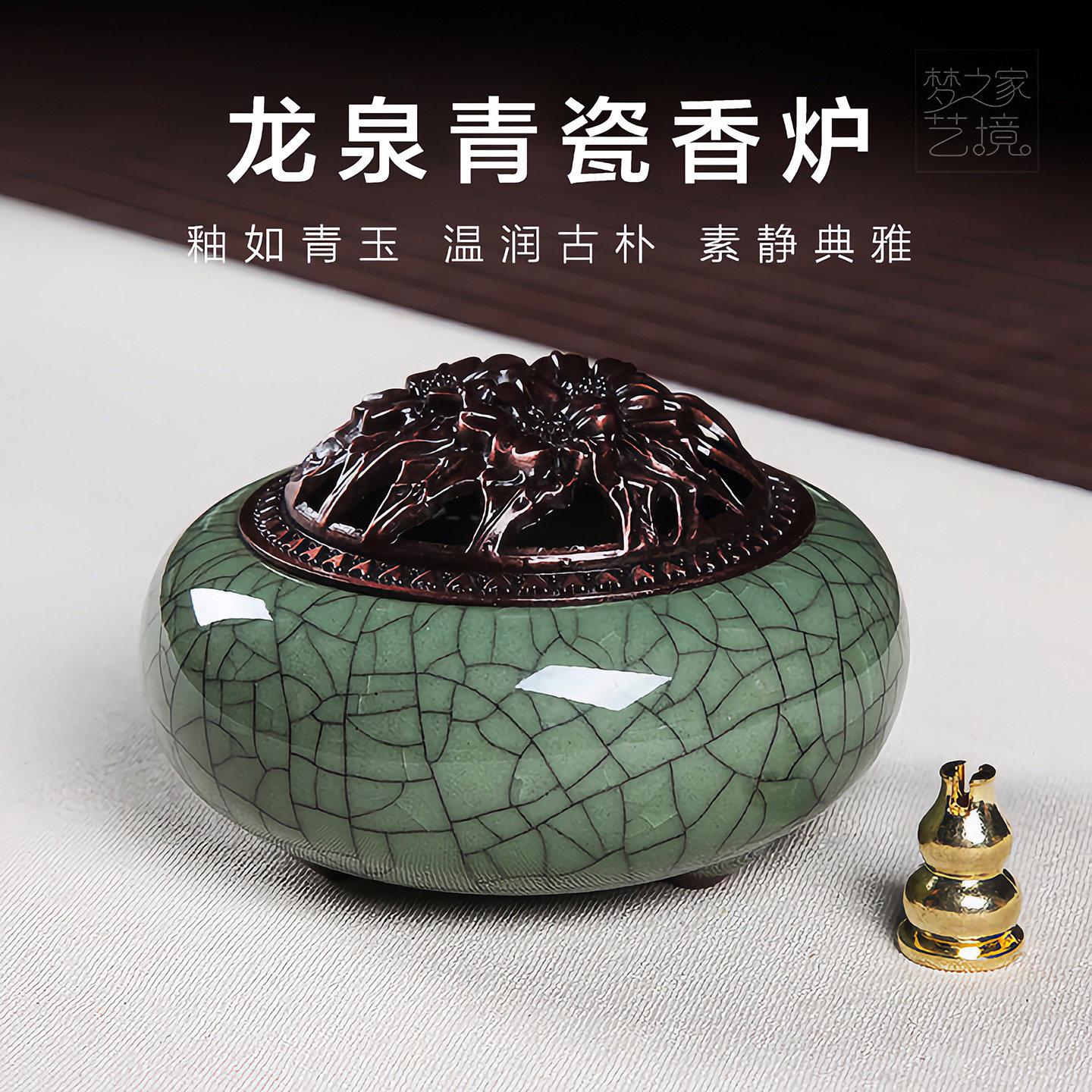 Longquan Celadon Incense Furnace Домохозяйство дзен украшения керамическая сандаловая плита ладан -горелка.