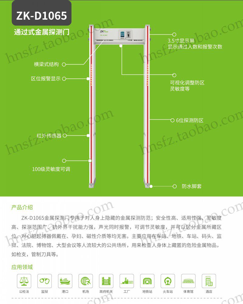 Основание энтропии ZK-D1065 Обнаружение металла Дверь безопасности 6 Разрешение