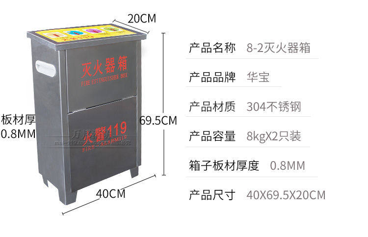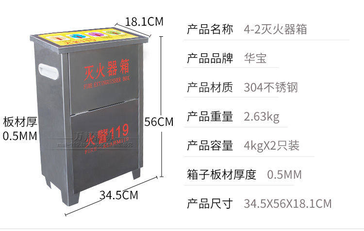 Заводские продажи 4 кг 2 ящика для огнетушителей, утолщенные шкафы для хранения пожарного оборудования из нержавеющей стали, компенсация ущерба гарантирована