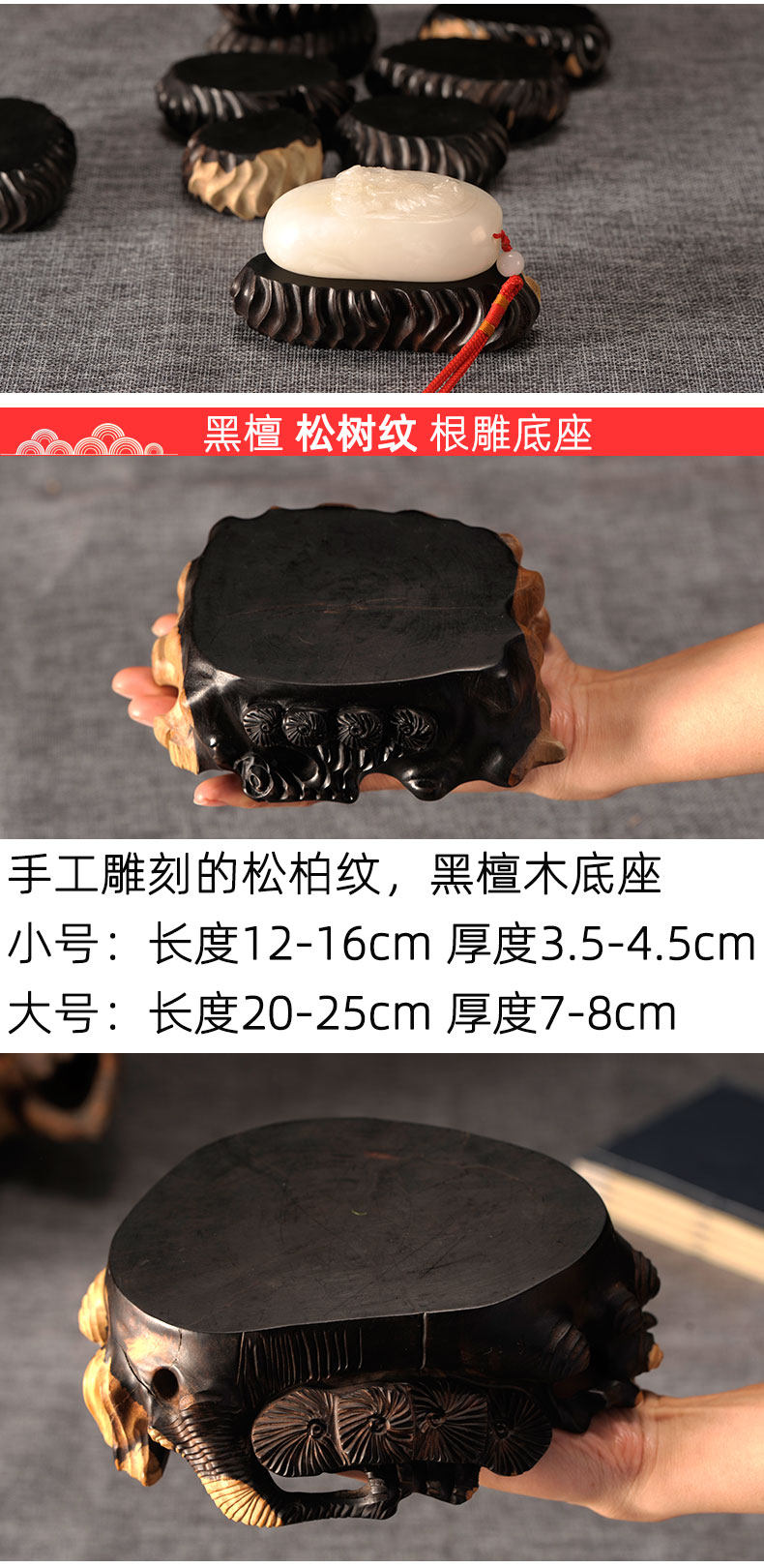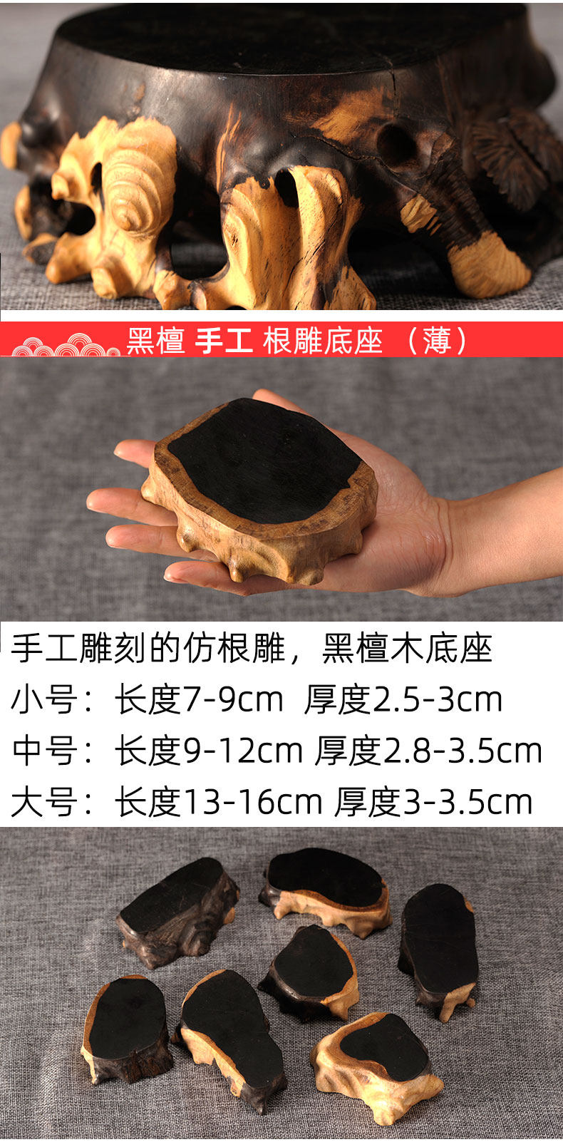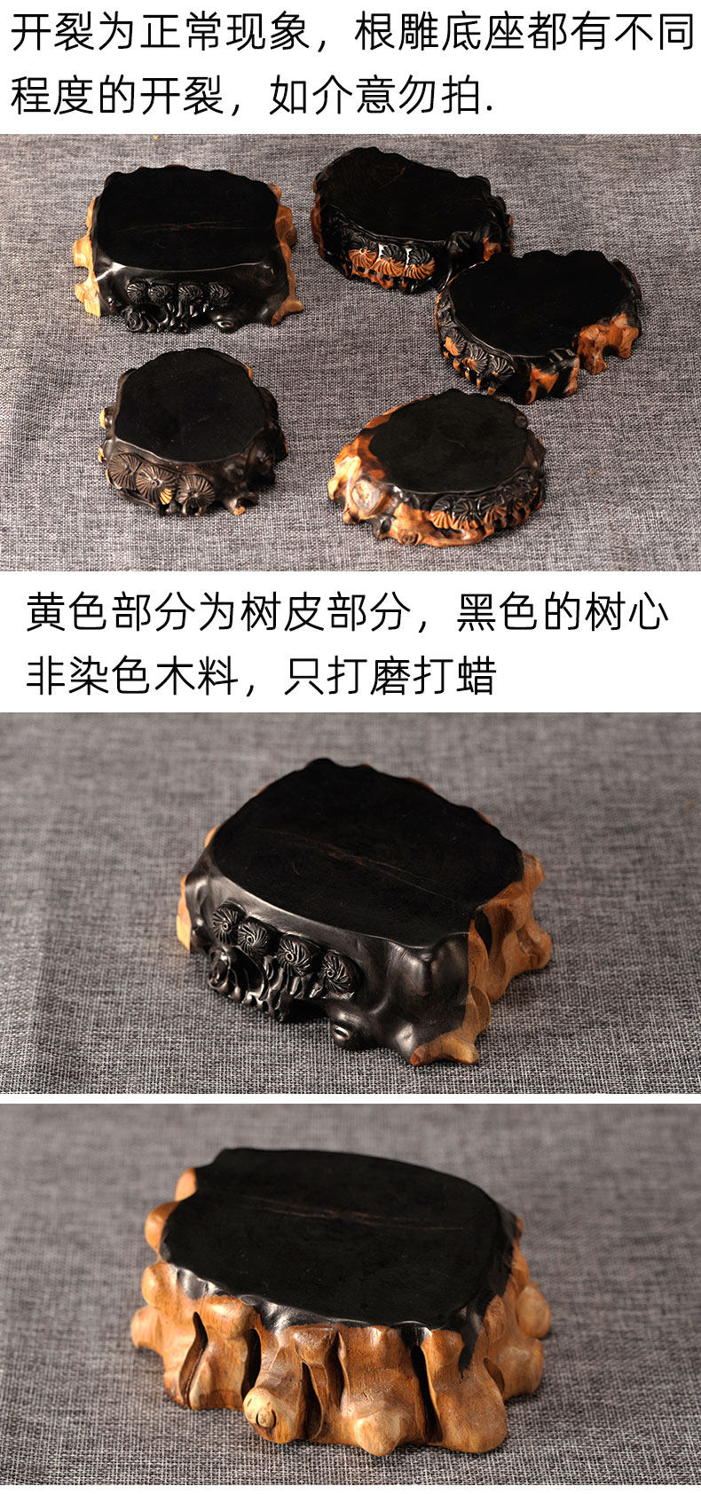 Эваническая корревая резьба база Qi камень копает основание Paiguang Sandald Натуральное повседневное изящное дерево украшения