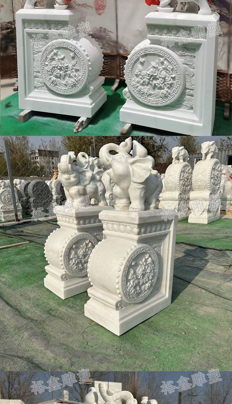 Резьба по камню, дверной пирс с барабаном, каменная пара слонов и белый мрамор, вилла, дом, двор, садовая дверь, каменный барабан, украшения