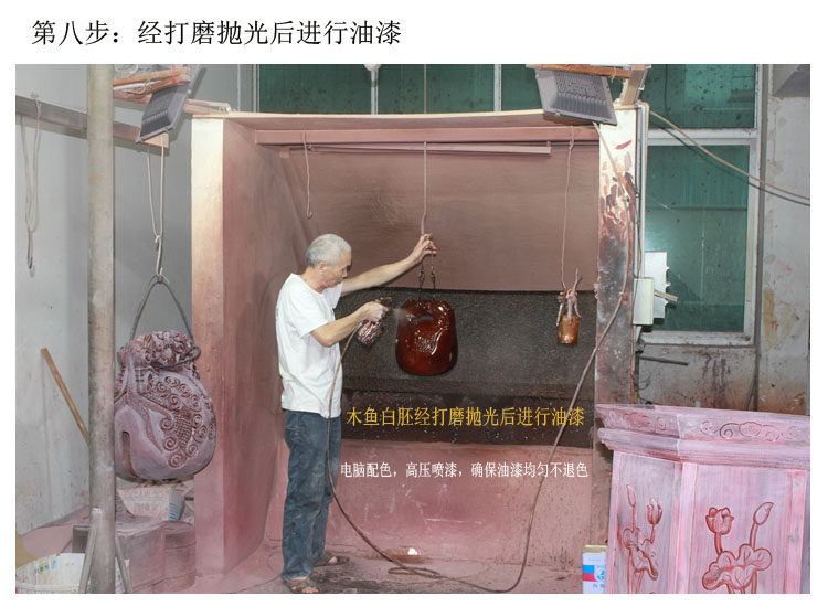 Деревянная рыба---Один из инструментов, используемых при пении сутр.В древности ее называли рыбным барабаном и рыбной тарелкой.Это деревянный инструмент в форме рыбы с вырезанным в нем полым отверстием и кнопкой, издающей звук.Зачем делать из дерева фигурки рыб и бить их во время пения?Причина в том, что вся рыба,онГлаза открыты весь день, поэтому монахи принимают это значение, чтобы показать свой прогресс, и они не осмеливаются немного расслабиться.