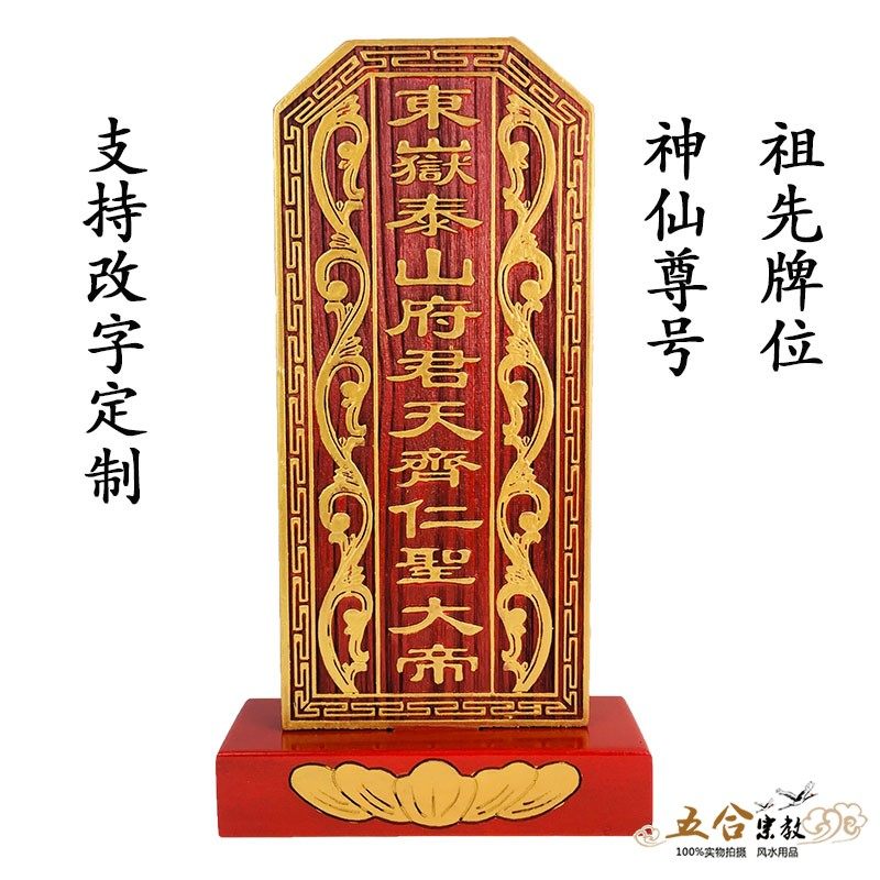 Твердое дерево резьба сказочная таблетка предка предки предки положения Бога позиция Dongyue Император Лингжи поддерживает индивидуальное золотое рисунок