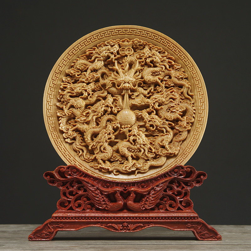 Yaibai Woodcarvan Dornmants Kowloon Opera Bead Soid Wood Гостиная украсить тарелку Kowloon, маленький лист, резиновые ремесла Yuke