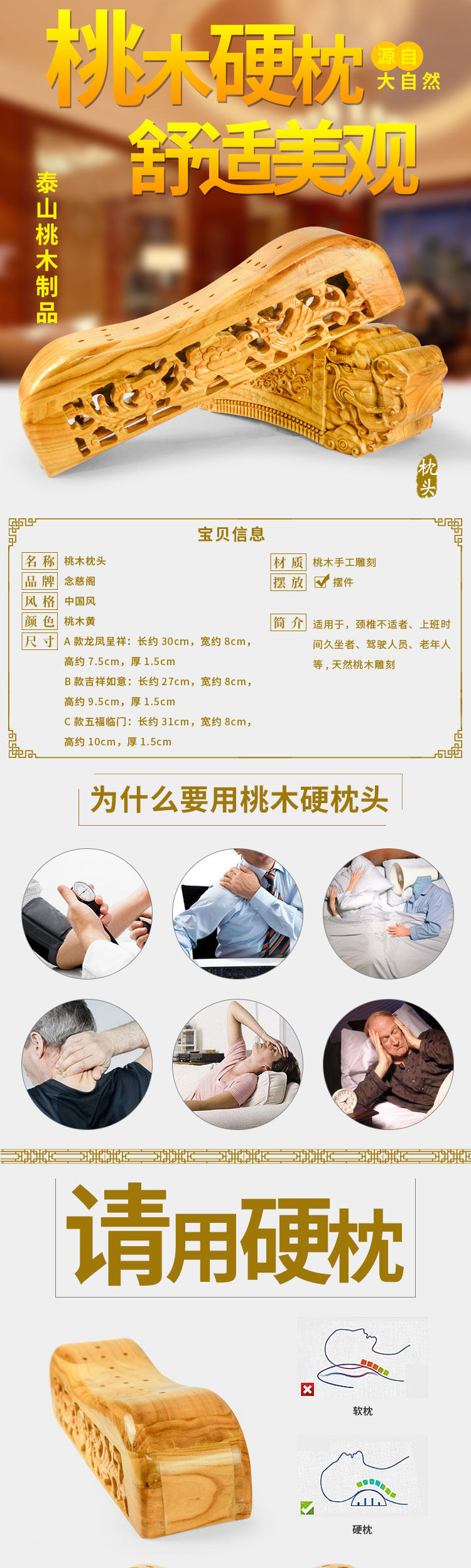 Подушка из персикового дерева, жесткая подушка для шейного позвонка, помогает спать и восстанавливать шейный позвонок, специальная бытовая одиночная подушка из цельного дерева с резной резьбой для взрослых