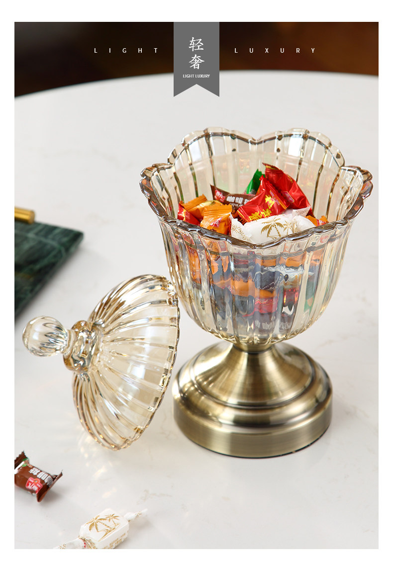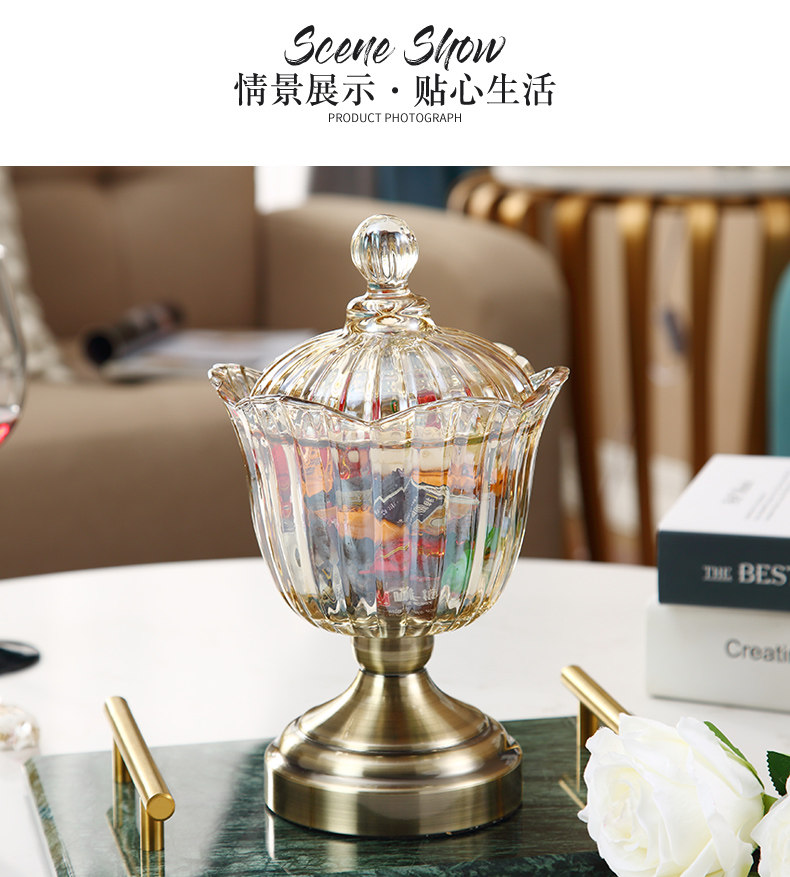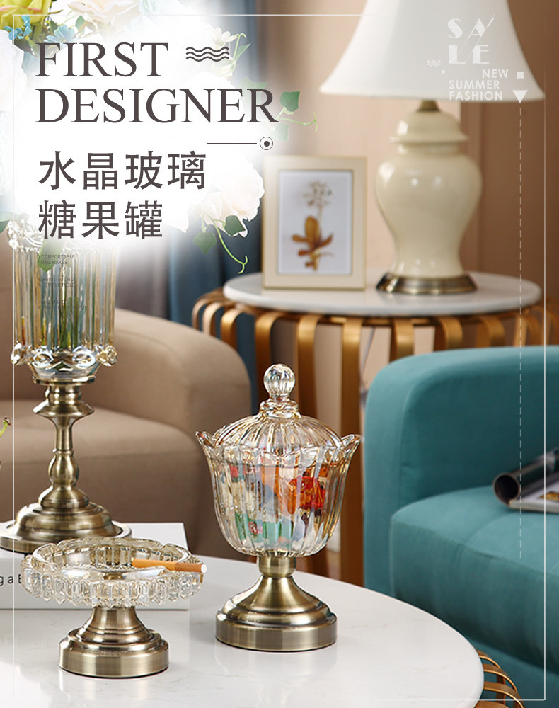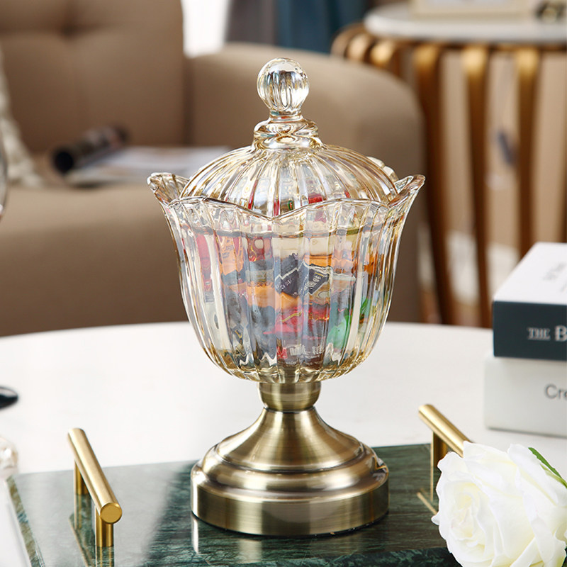 Европейский стиль легкий роскошный хрустальный стеклянный прозрачный танк с конфетами с американским хранением
