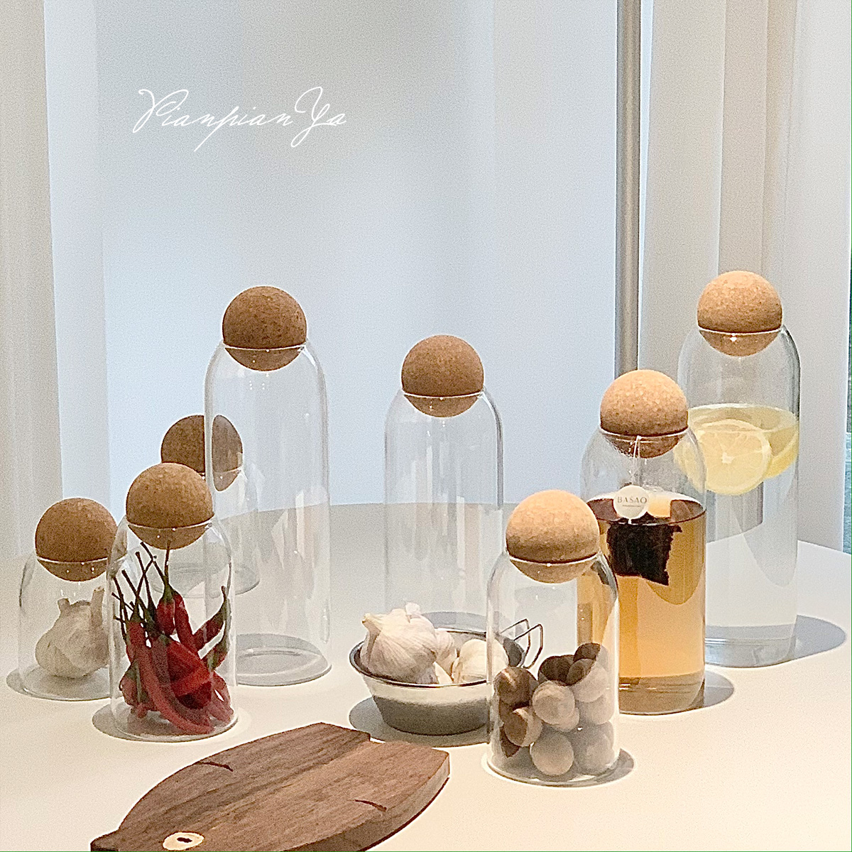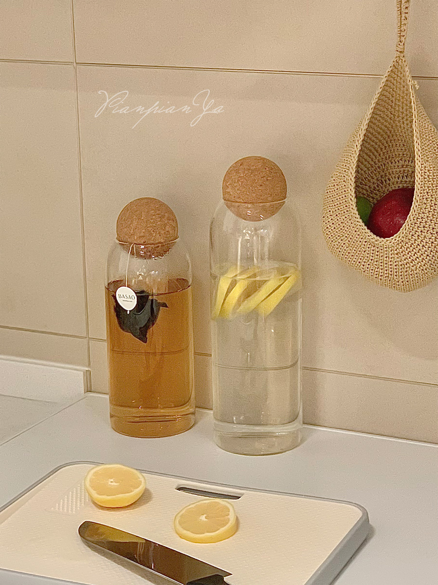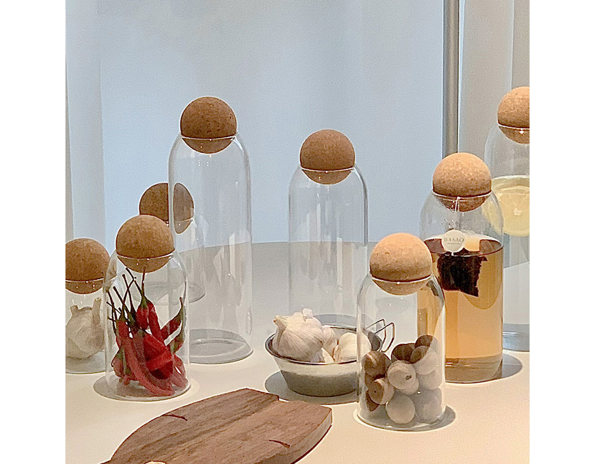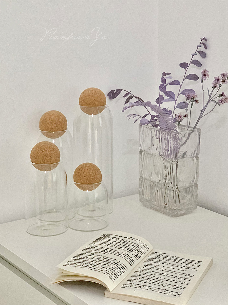 Японская прозрачная стеклянная банка с пробкой.
