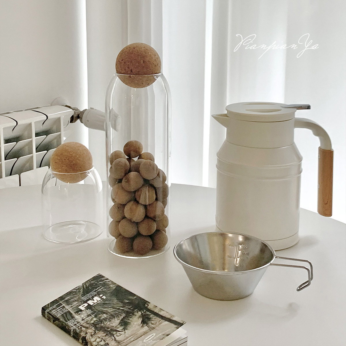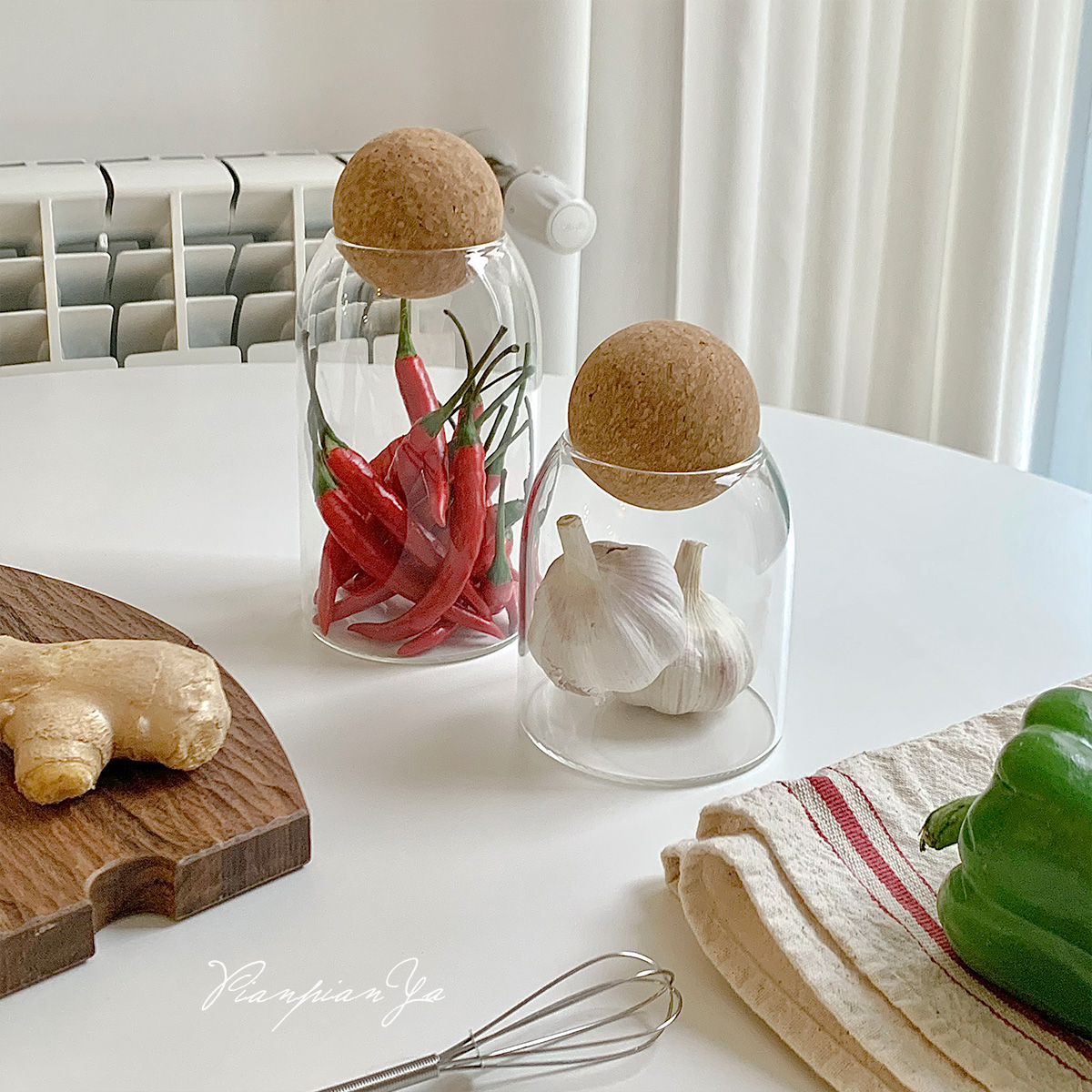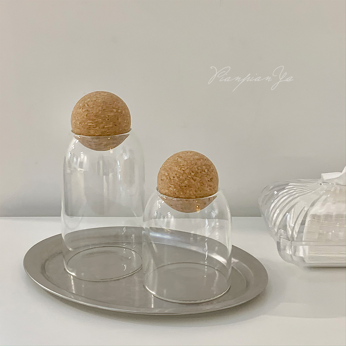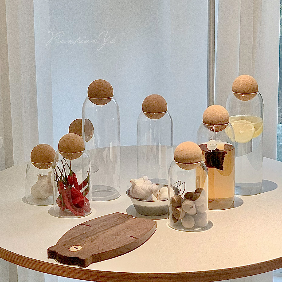Японская прозрачная стеклянная банка с пробкой.