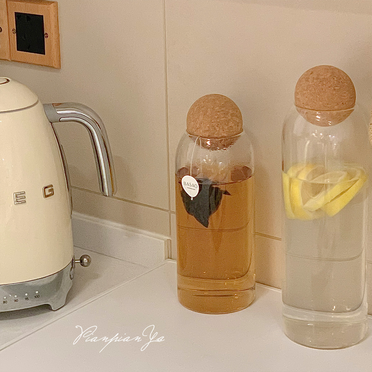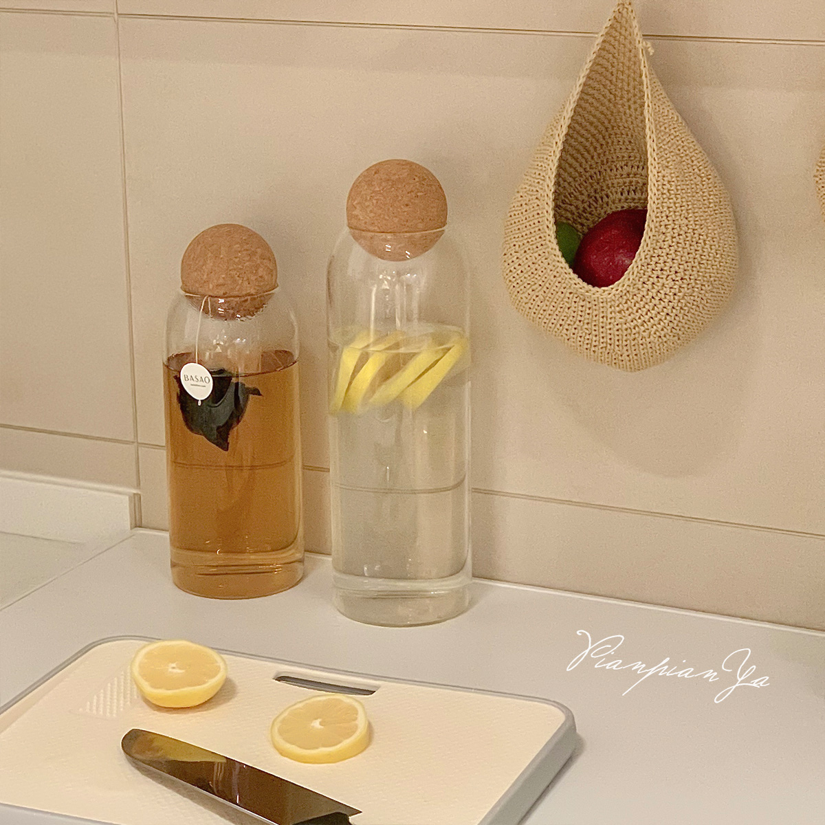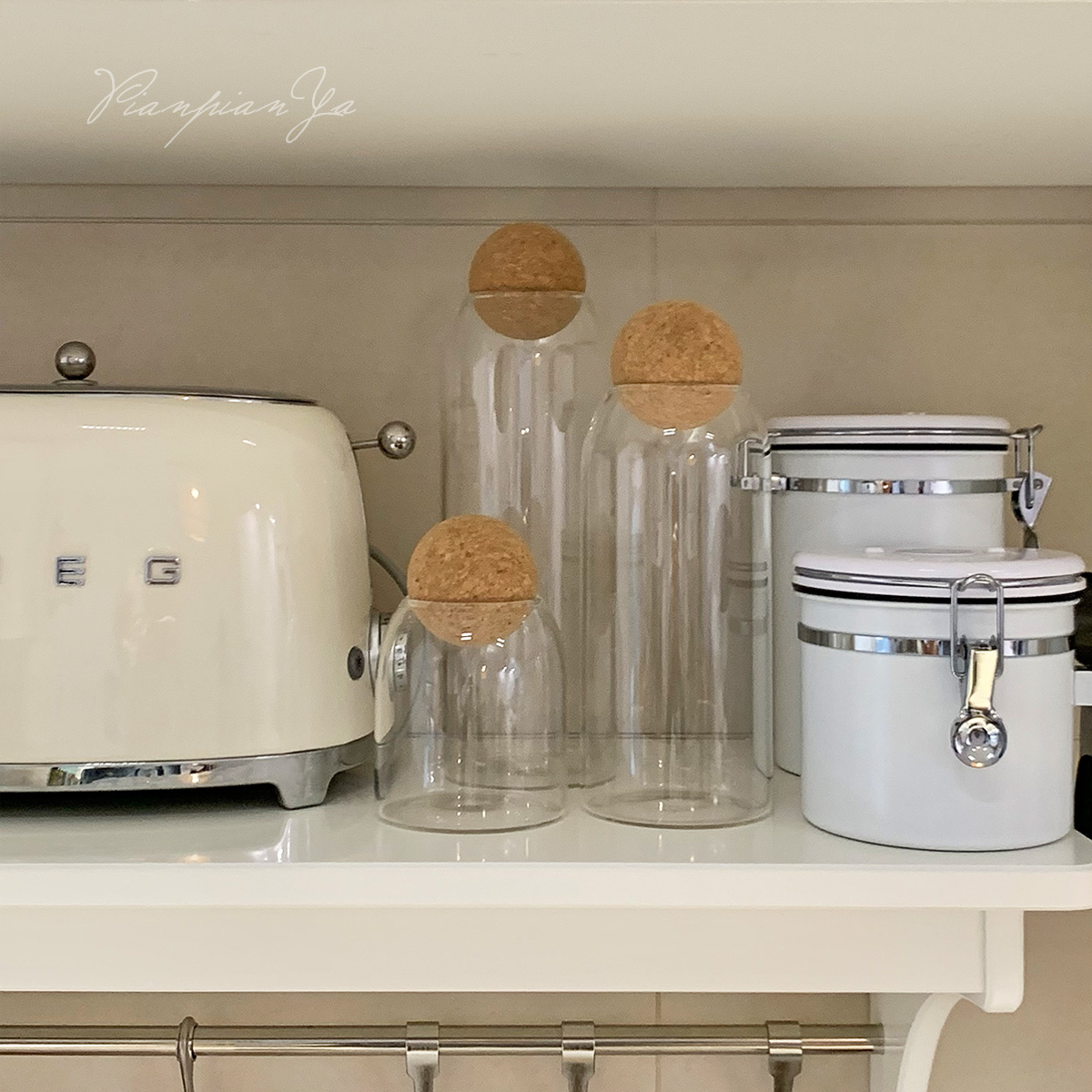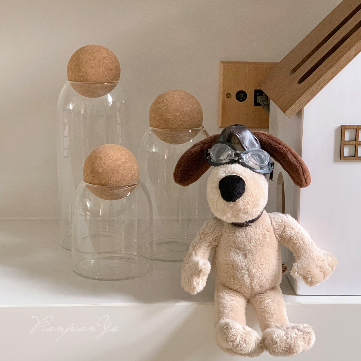 Японская прозрачная стеклянная банка с пробкой.