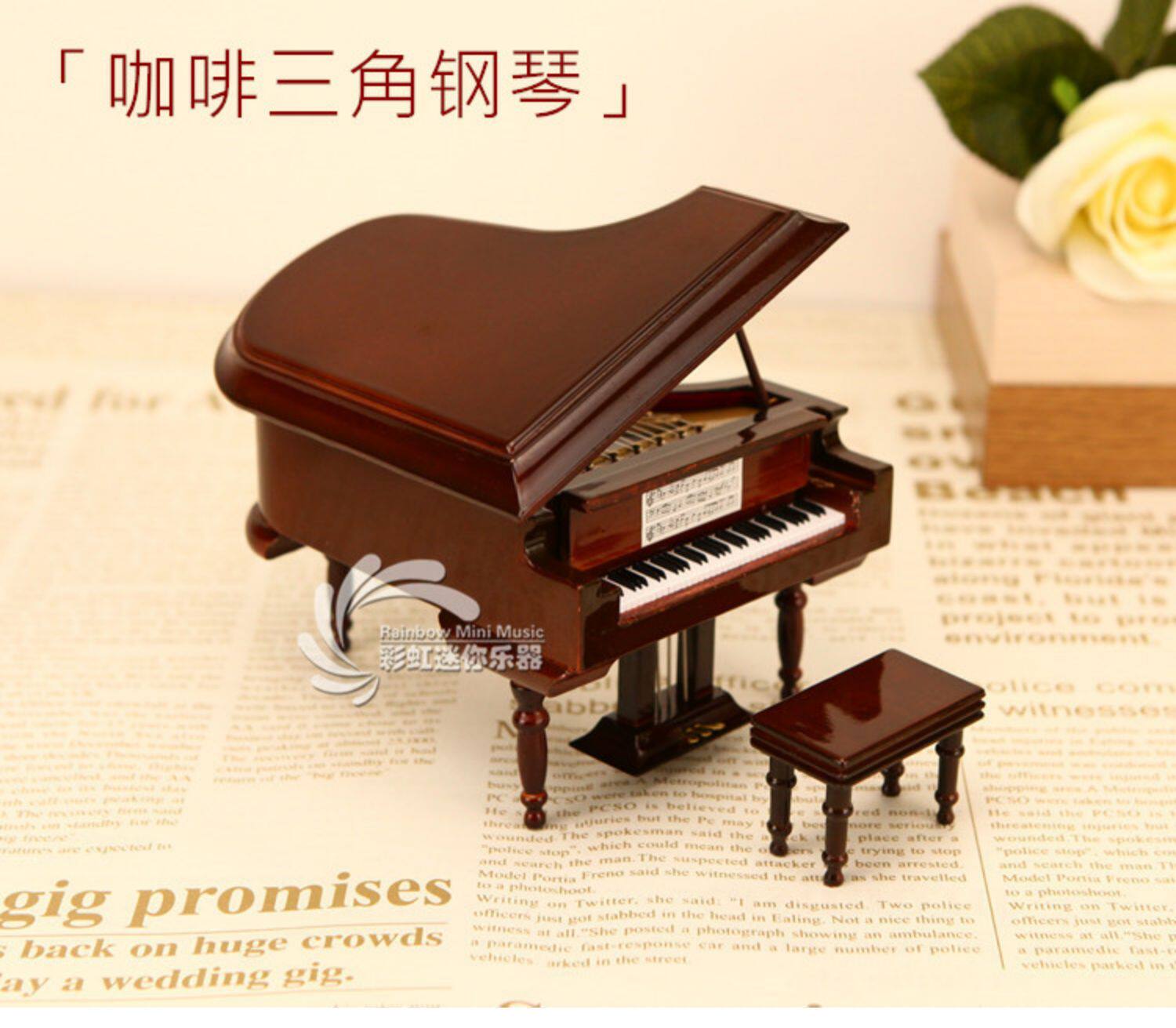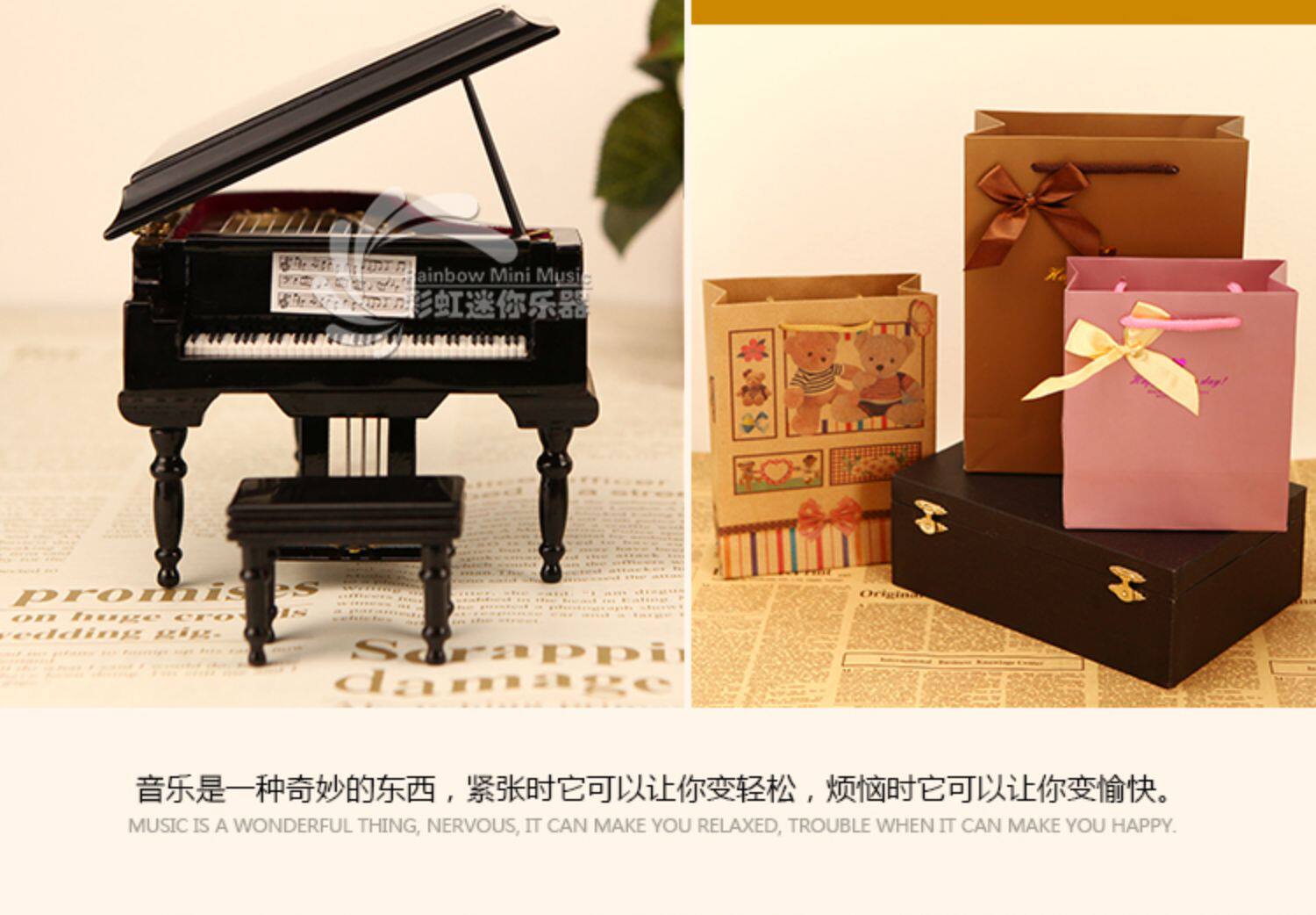 Деревянное пианино, музыкальная шкатулка, рождественская фигурка для влюбленных подходит для мужчин и женщин для друга, подарок на день рождения
