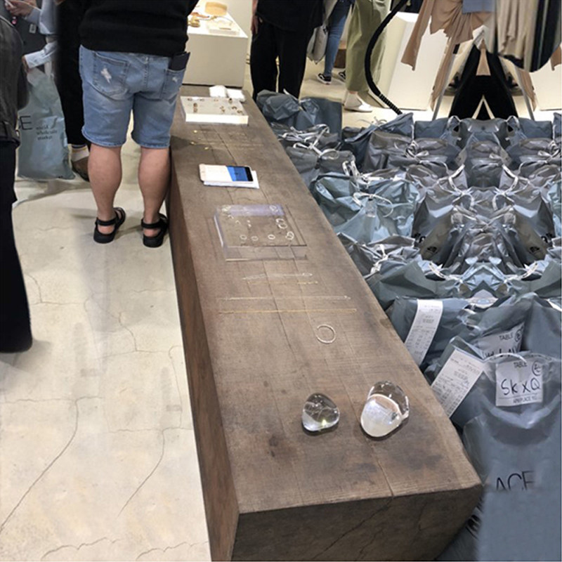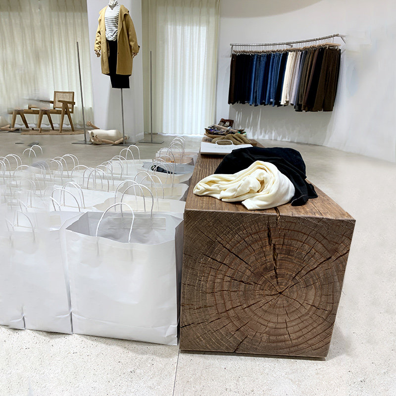 Северный магазин одежды магазин ретро, бревенчатый стул, творческий старый деревянный пирс дисплей -обувь -Целью выставочного табуреть